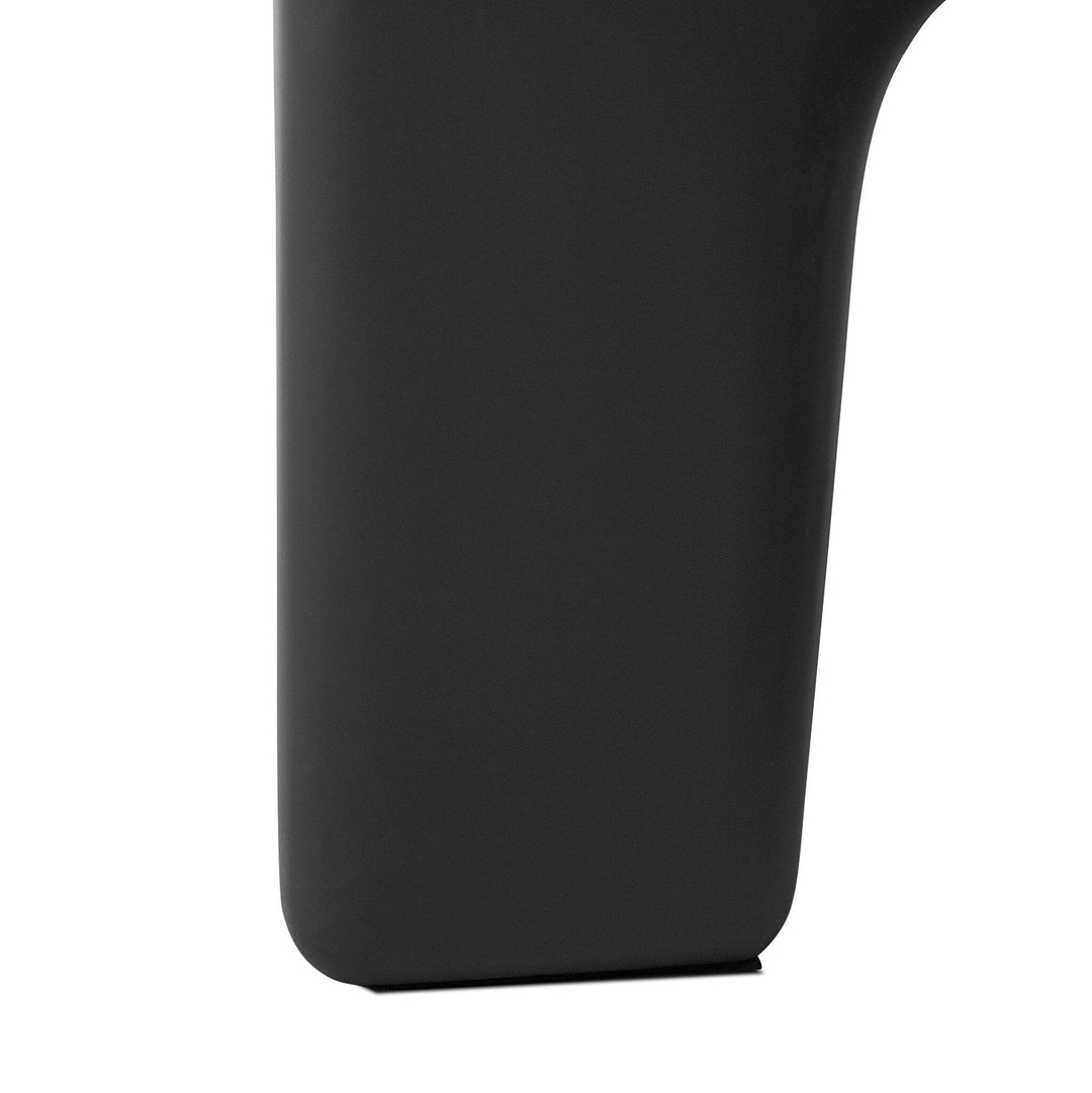 Adobe vibes. Made entirely from black-finished cast concrete soft chunky proportions lend a look of depth to this uniquely sculpted end table. Indoors or out; cover or store inside during inclement weather and when not in use.