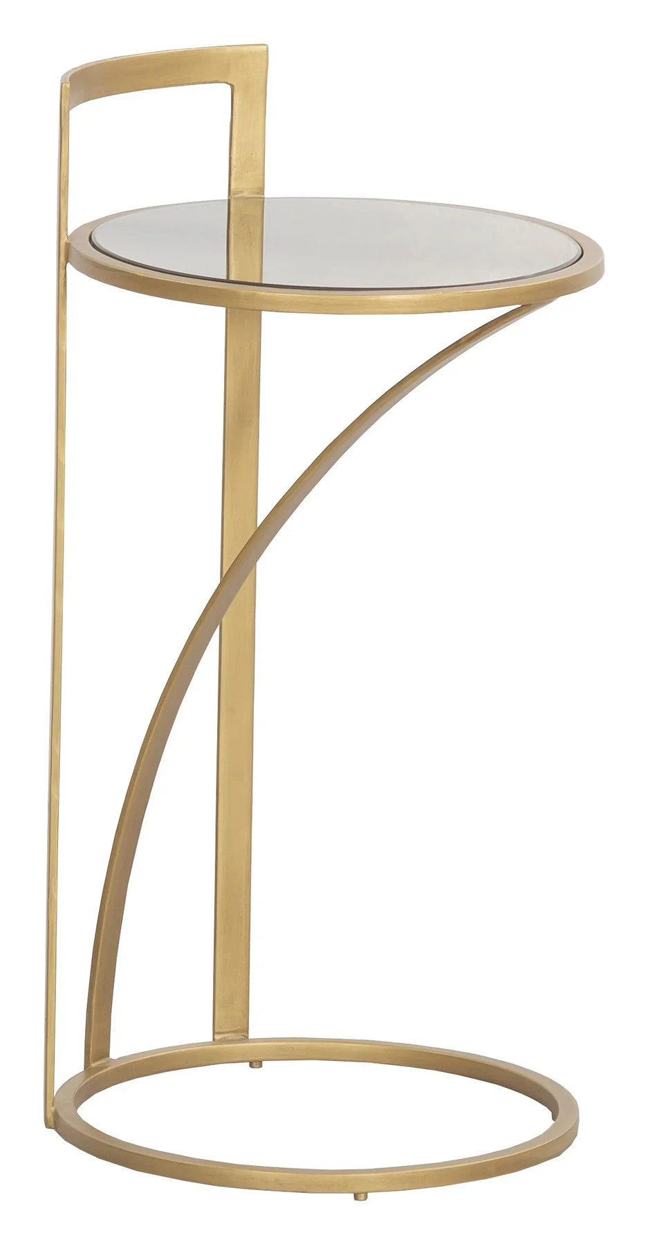 Simple, yet highly functional. Our French 75 drink table features a handhold to easily move this table beside your favorite Fairfield chair to hold your favorite libation of choice. Gold finished metal and glass top accent this smart drink table.