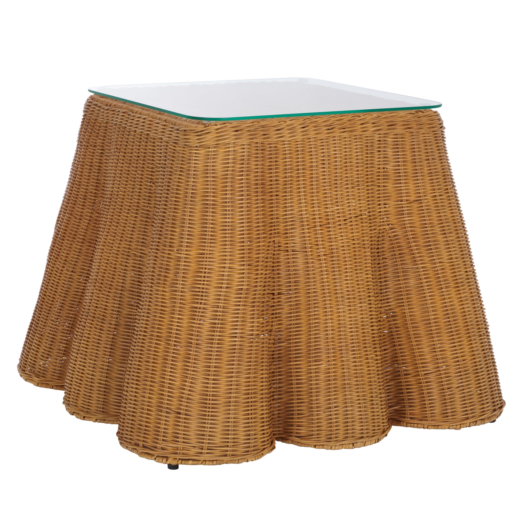 Introducing the Hylda Square Rattan Accent Table in a natural finish. This stunning piece brings a touch of style and functionality to any space. Crafted with a harmonious blend of metal, rattan fitrit, and tempered glass, it offers a unique fusion of materials that is both eye-catching and versatile. The natural rattan design adds a warm and inviting touch, making it a delightful addition to your living room, bedroom, or office. The tempered glass top provides a smooth surface for displaying decor, holding drinks, or placing your favorite books. Its compact square design makes it an ideal choice for small spaces or as an accent piece in larger rooms. Explore the charm and practicality of the Hylda Square Rattan Accent Table and transform your home decor with its elegant aesthetic. Whether it's for relaxation or entertaining, this table is ready to complement your style and bring an appealing atmosphere to your surroundings.