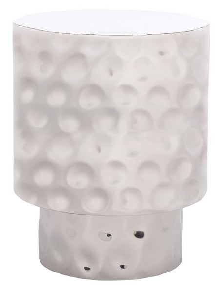 Introducing our Janalee Hammered Steel Accent Table, a strikingly modern and stylish addition to your home or office interior. Boasting a captivating chrome color, this table is the epitome of sleek and contemporary chic. Crafted from hammered stainless steel and iron, this accent table showcases an intricate design that demonstrates an innovative blend of style and strength. The distinguishing hammered finish adds a layer of textured depth, making it a noteworthy focal point in any room. The Janalee Accent Table mirrors a distinctive design that blends well with a variety of decor styles. Light reflects beautifully off the chrome color, lending a sophisticated and polished touch to your space. The robust nature of its material ensures it stays robust and unyielding, adding to its durability. This table is not just a prominent piece of furniture, but an embodiment of modern elegance. Display your favorite showpieces or keep your essentials close to you with this stylish chrome accent table. The Janalee Hammered Steel Accent Table, where elegance meets functionality!