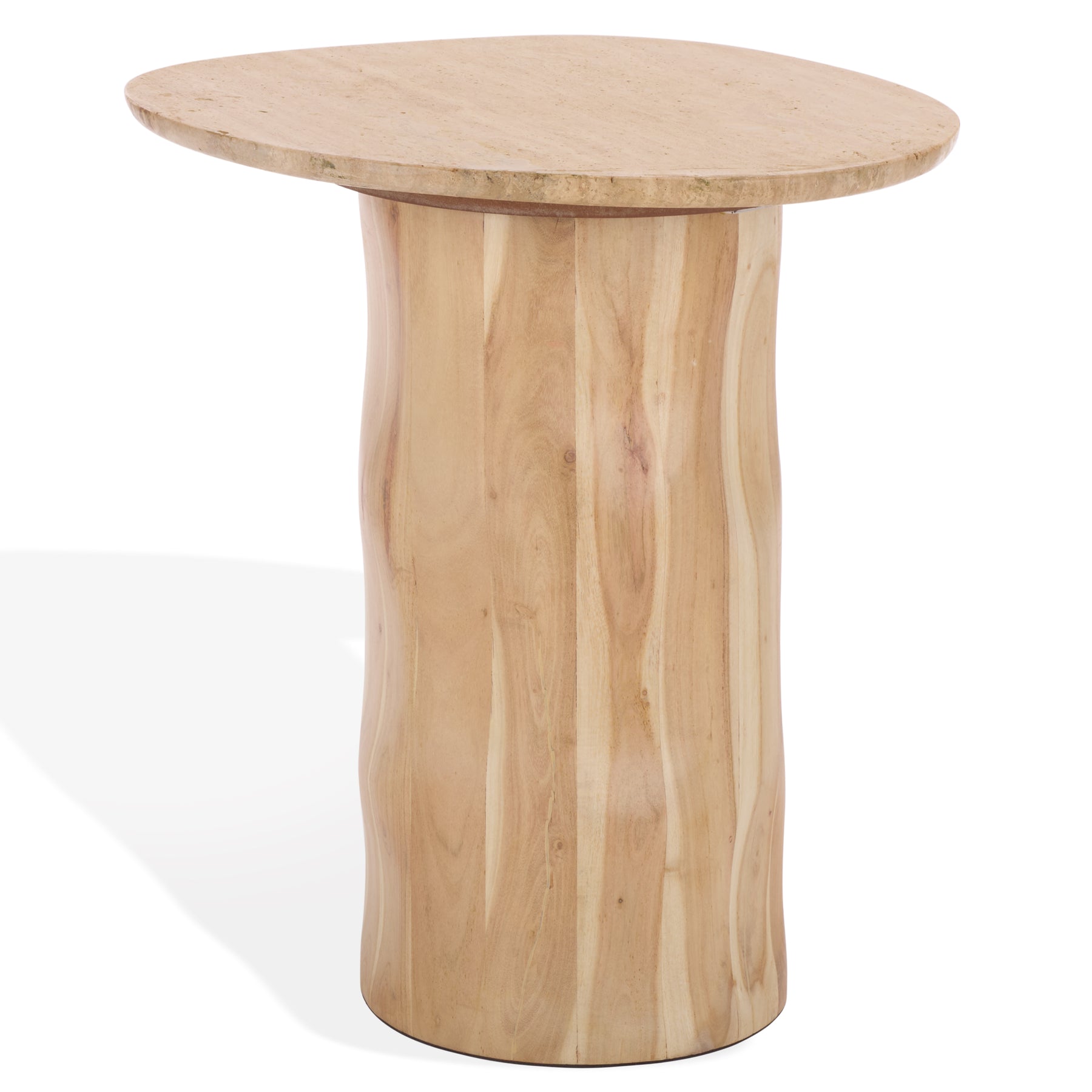 Introduce elegance into your living space with the Jennamira travertine top accent table. This stunning piece combines natural travertine with the warmth of wood to offer a harmonious blend that suits any decor. The unique textures and color variations of the travertine create an eye-catching focal point, making it an ideal choice for those who appreciate the timeless charm of nature. The natural hues of the table add subtle sophistication while the sleek design ensures it integrates seamlessly into your home. Whether placed in your living room as a conversation starter or in your hallway for that finishing touch, the Jennamira table will elevate your interior setting. Its understated elegance and practical design make it a versatile addition to your space. Celebrate the beauty of natural elements and bring a touch of refined style to your home with the Jennamira travertine top accent table.
