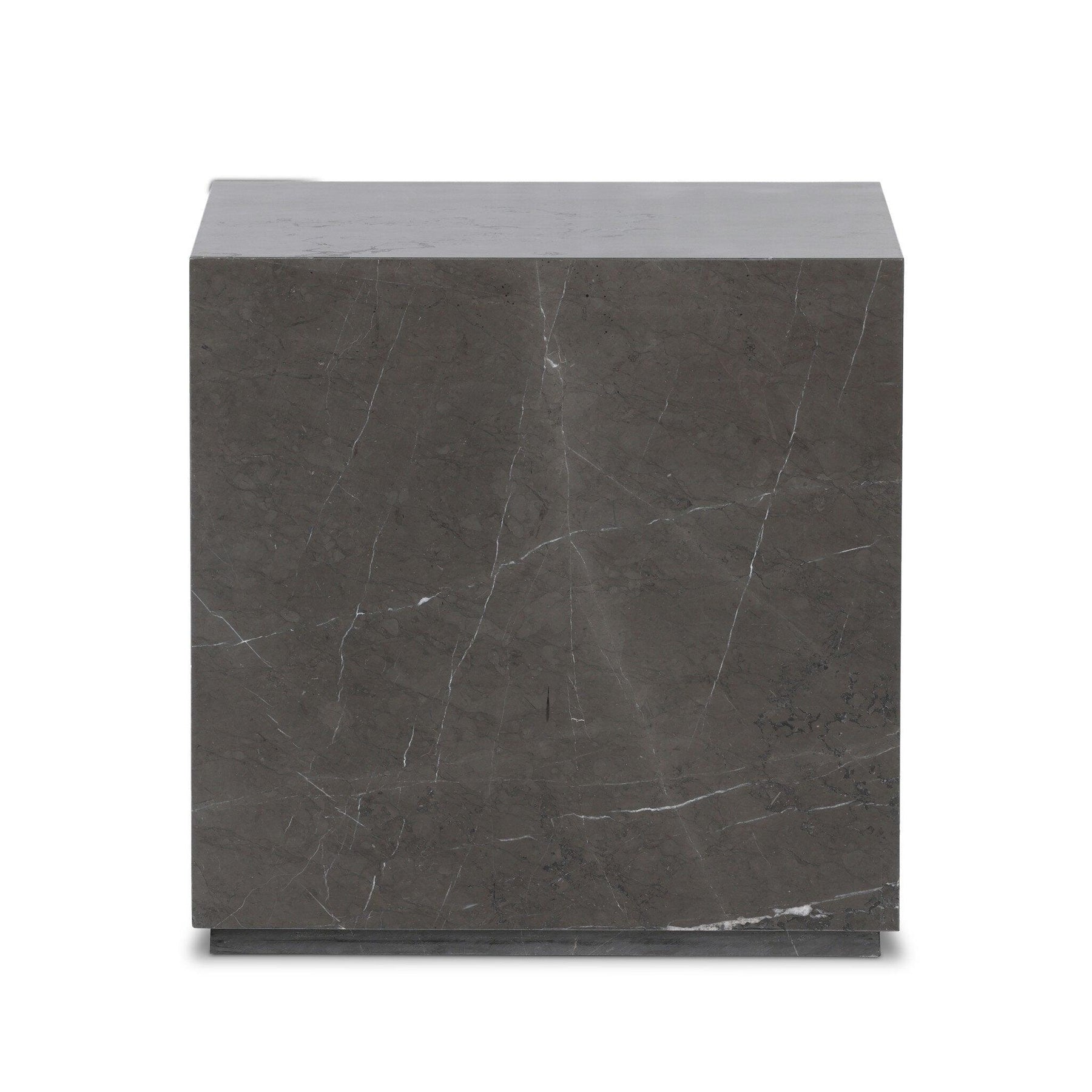 Grey Italian marble shapes a cubed plinth-style end table that can be styled just about anywhere.