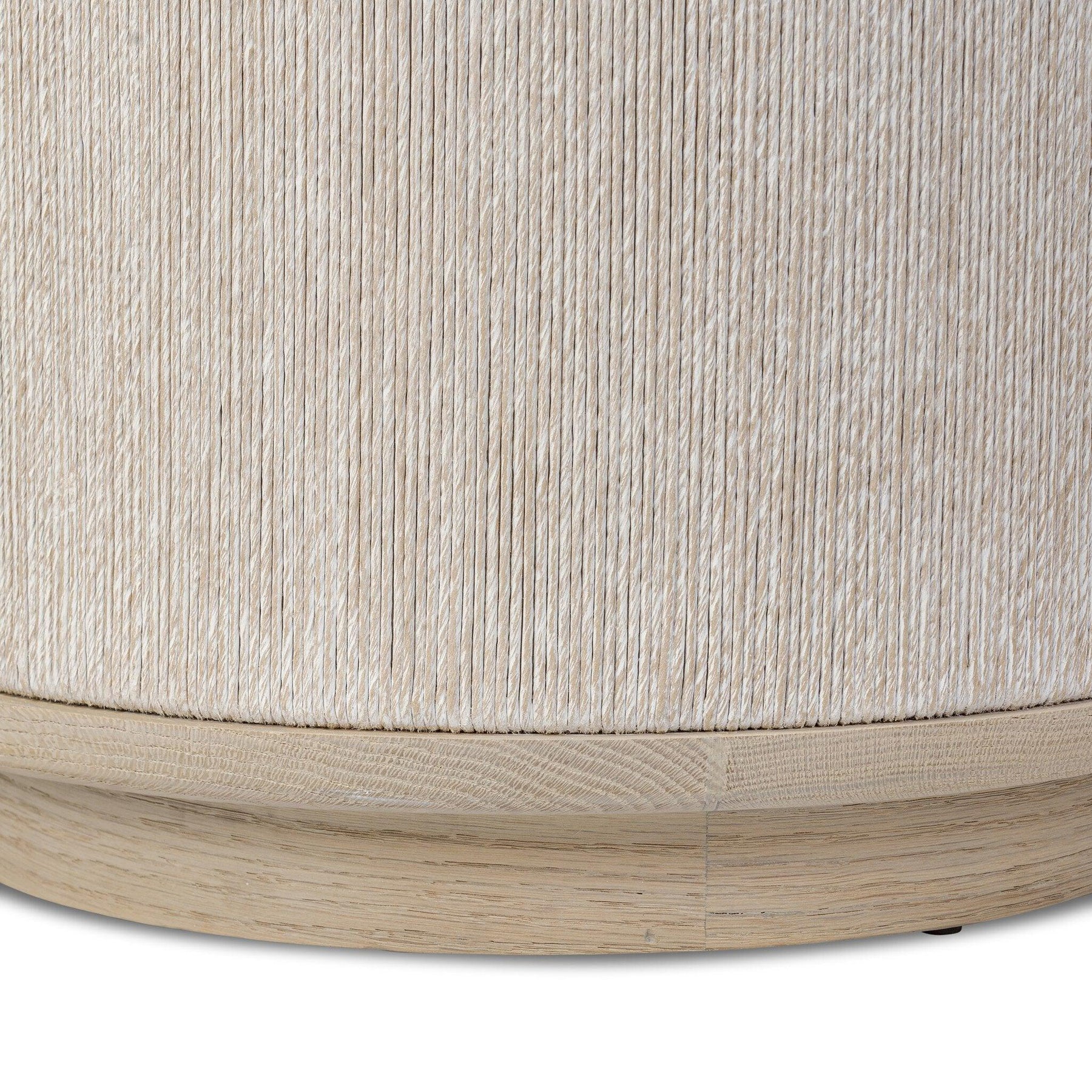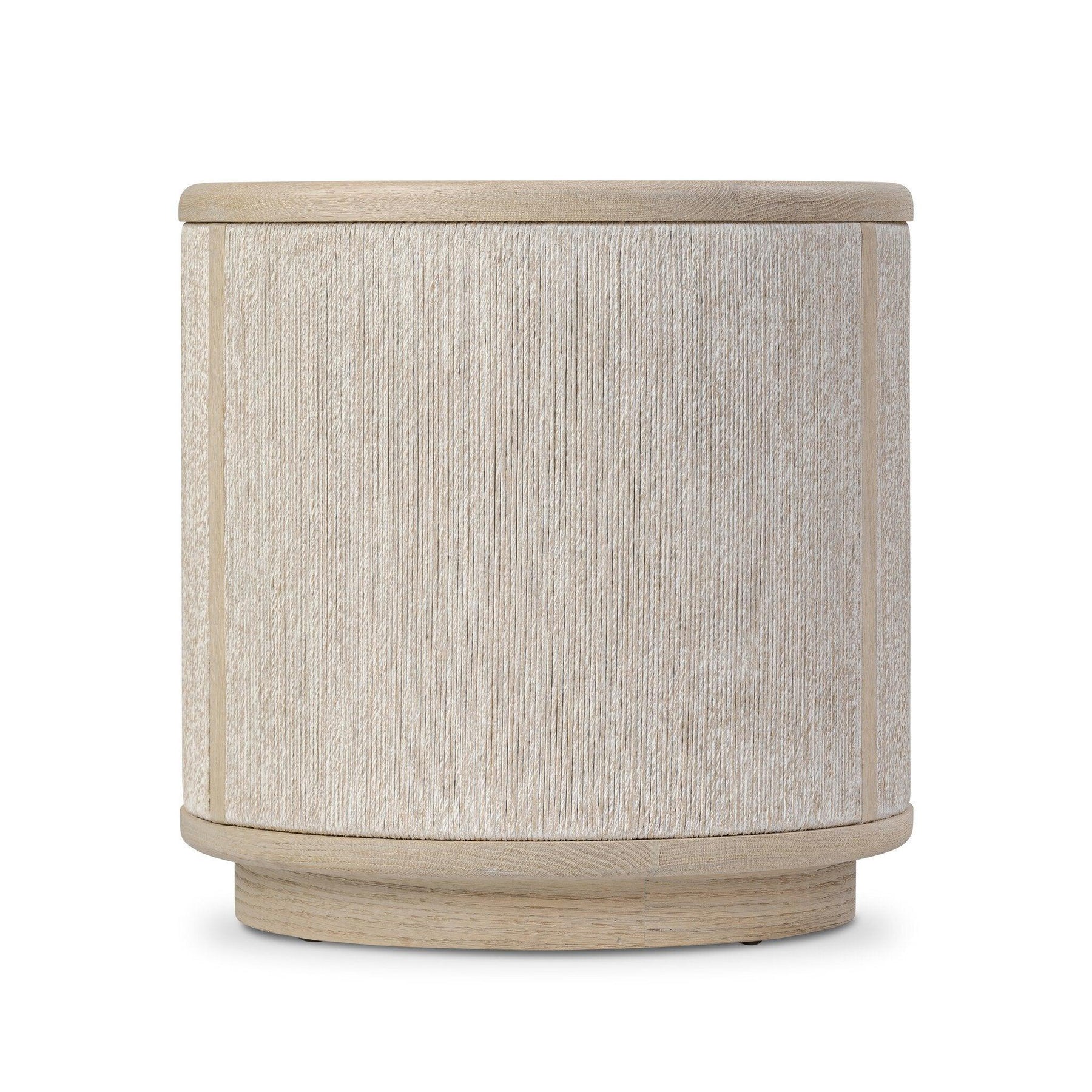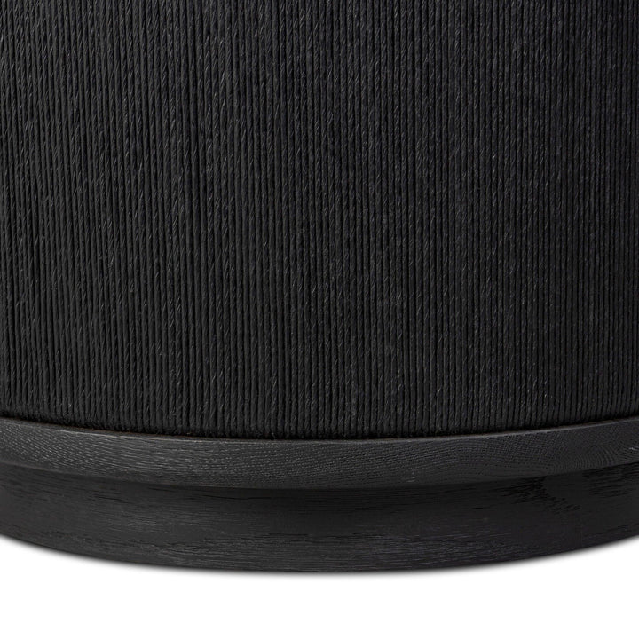 Introduce texture in any room with a drum-style end table of black-finished oak and paper cord. This rich transitional piece is perfectly sized to keep your morning coffee or evening cocktail within reach.