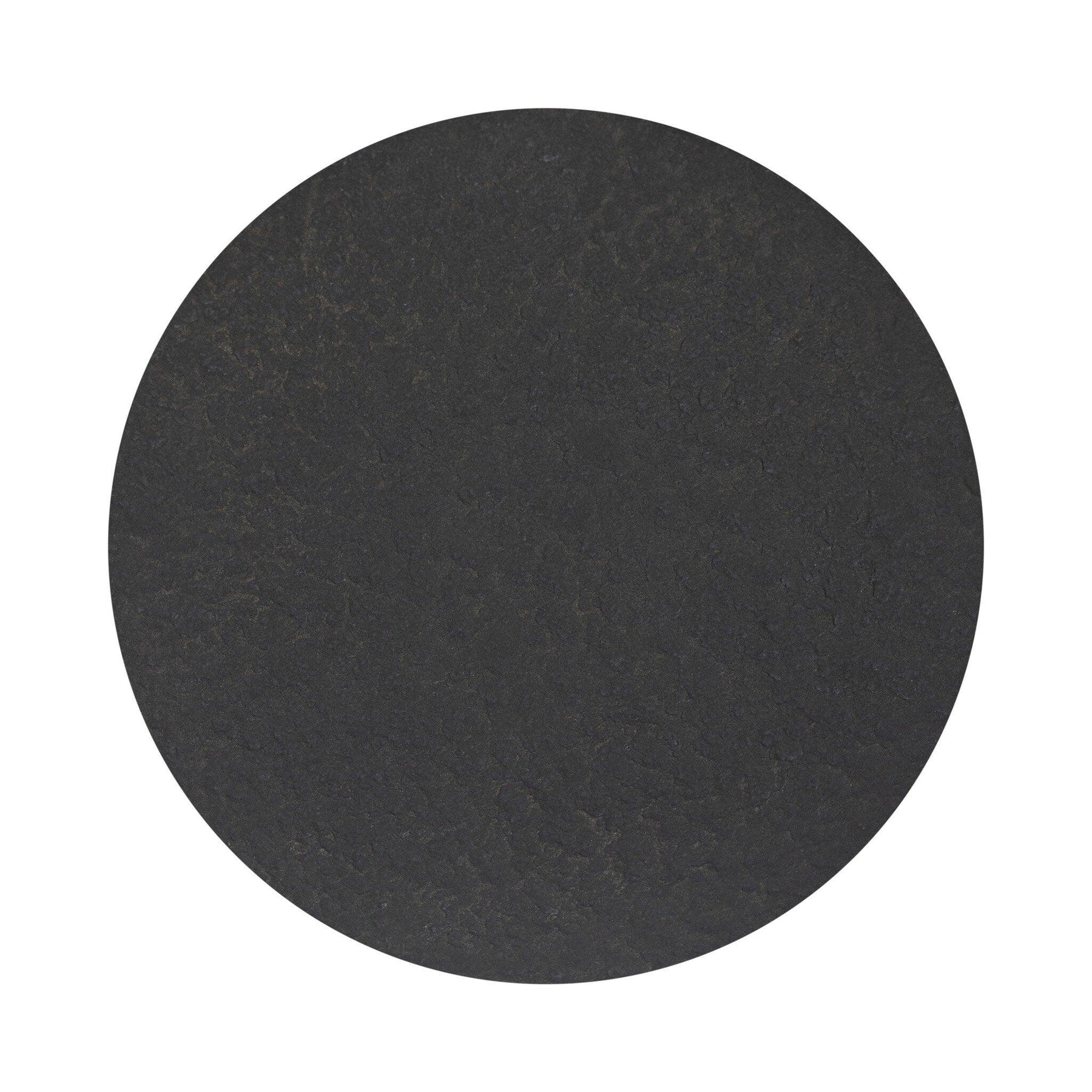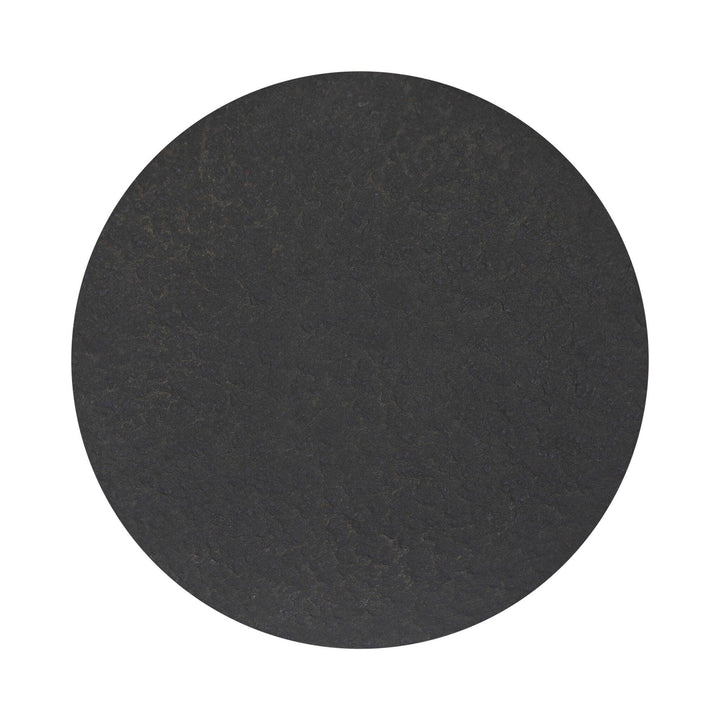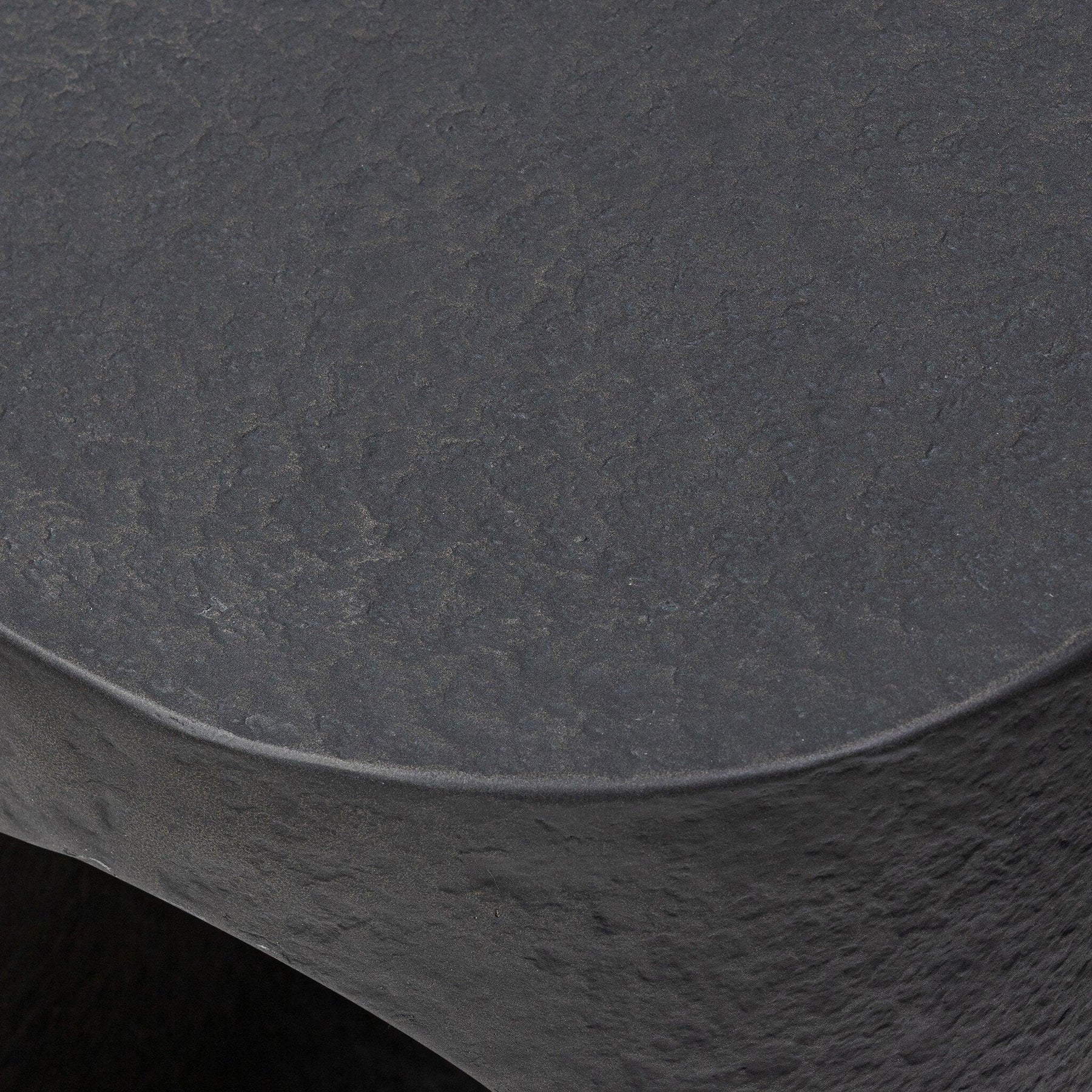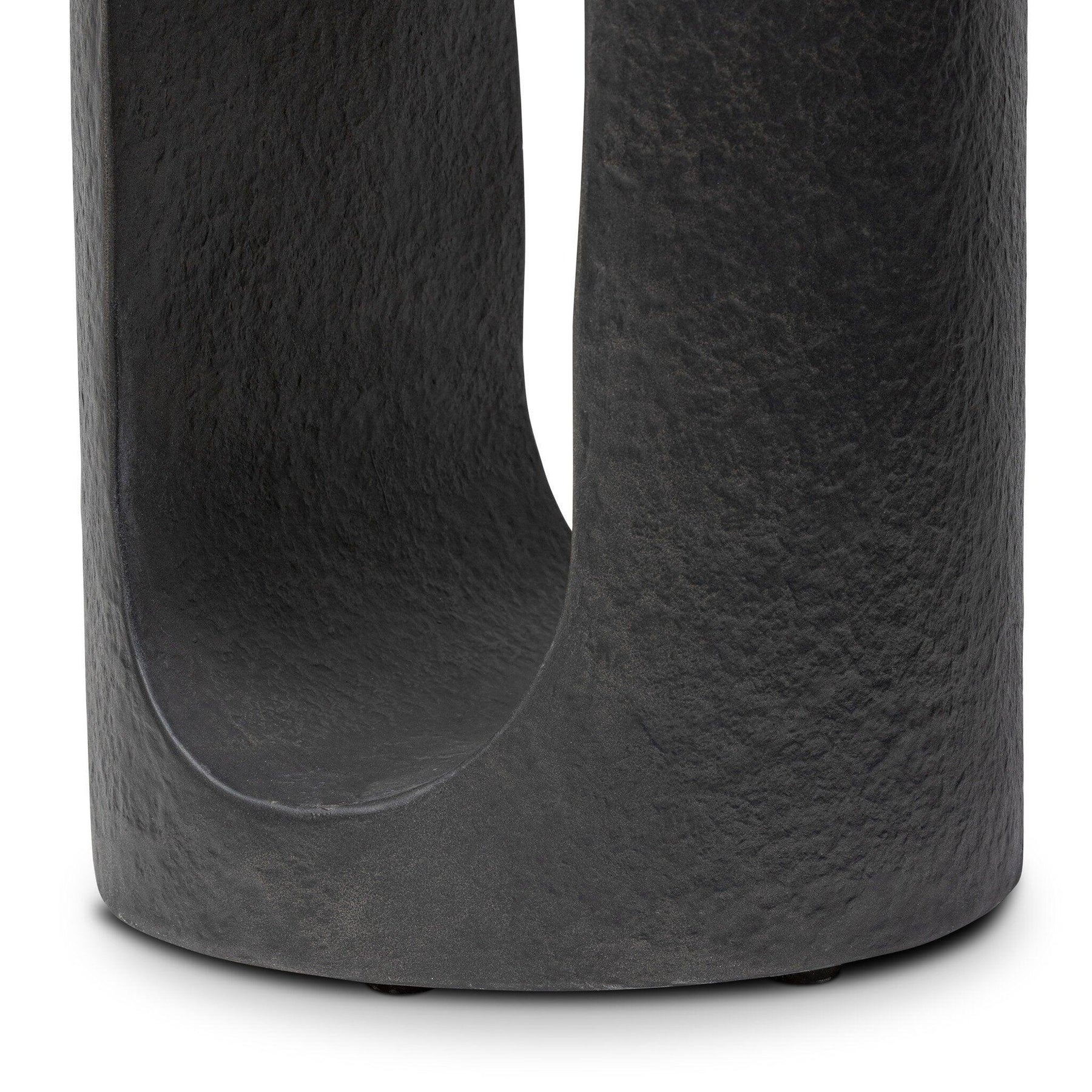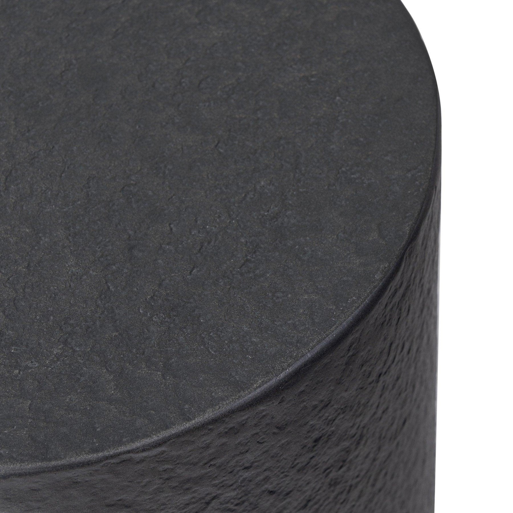 Made from textured concrete a cylinder shaped end table features a pill-shaped cutout for a light look. Subtle mottling adds a hint of texture.