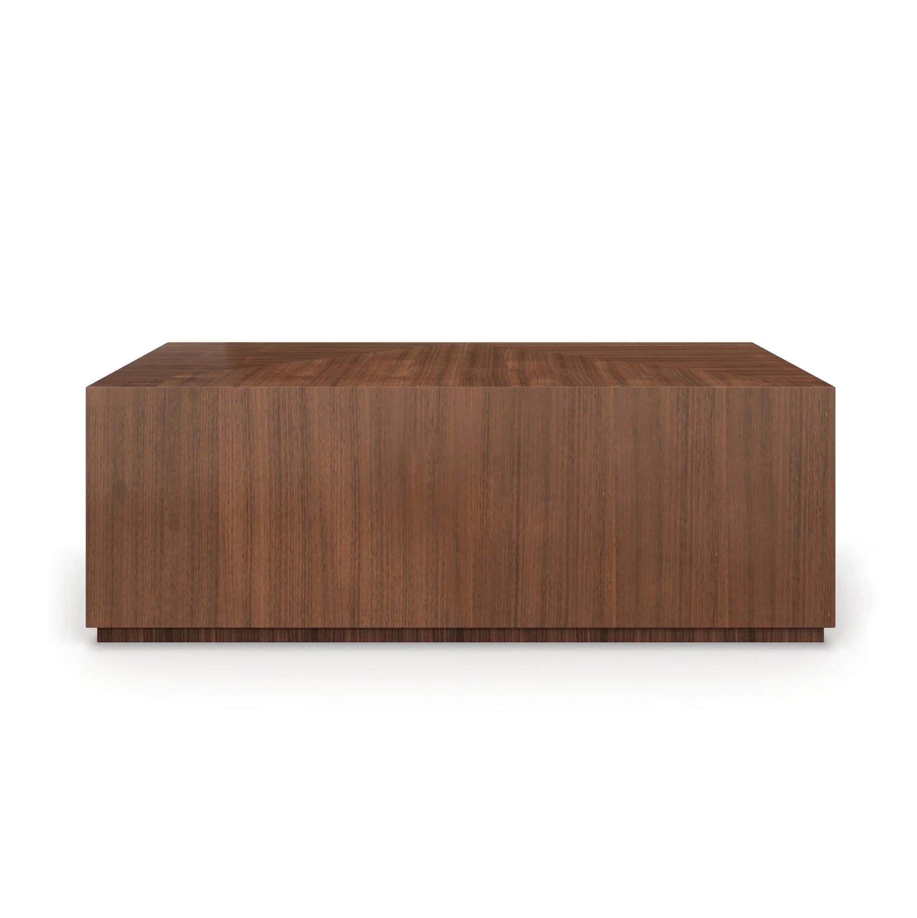 Bello is a beautiful celebration of a classic wood. Book-matched Retro Walnut veneers are hand-applied in intersecting triangles on the top of the table. The veneers seamlessly continue down the sides of the block-style table to a thin plinth with Retro Walnut running in a contrasting vertical pattern. This is a rich-looking piece that pairs with many styles of décor. Designed and sized to fit modularly into Bello upholstery.