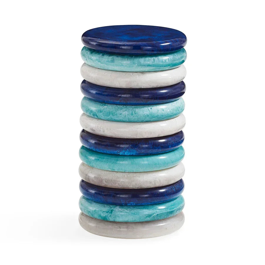 Juicy, dimensional color and a bold, simple shape—mesmerizing. Hand-poured to create a unique marbleized finish, each ring is then polished to luminous perfection. in swirling sea-inspired blue and white tones, our Como Accent Table an ultra-mod sidekick for your chair or sofa (and spot to rest your book or drink).