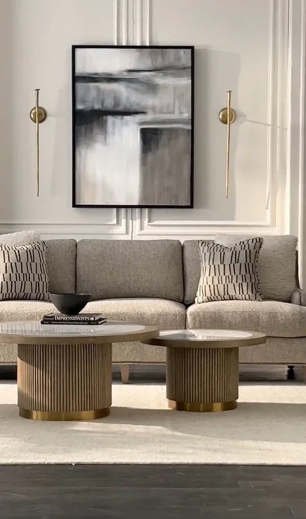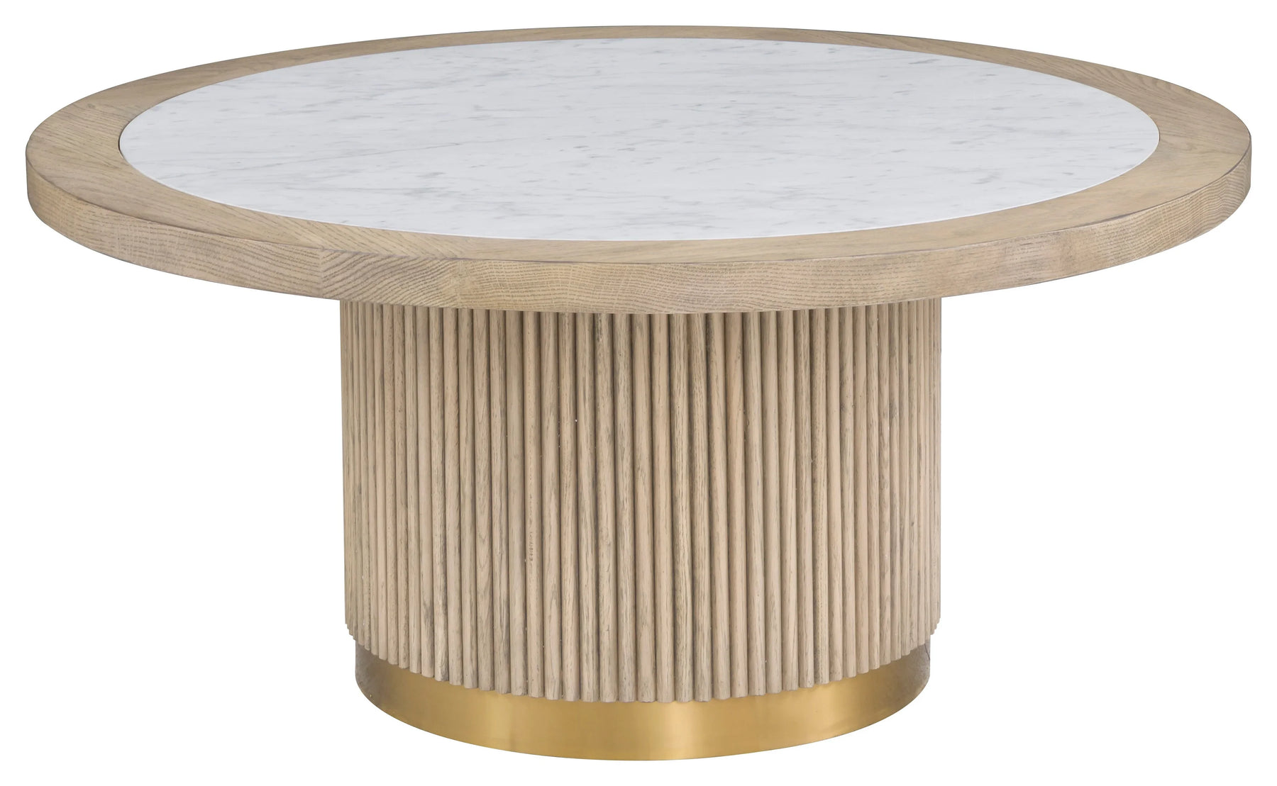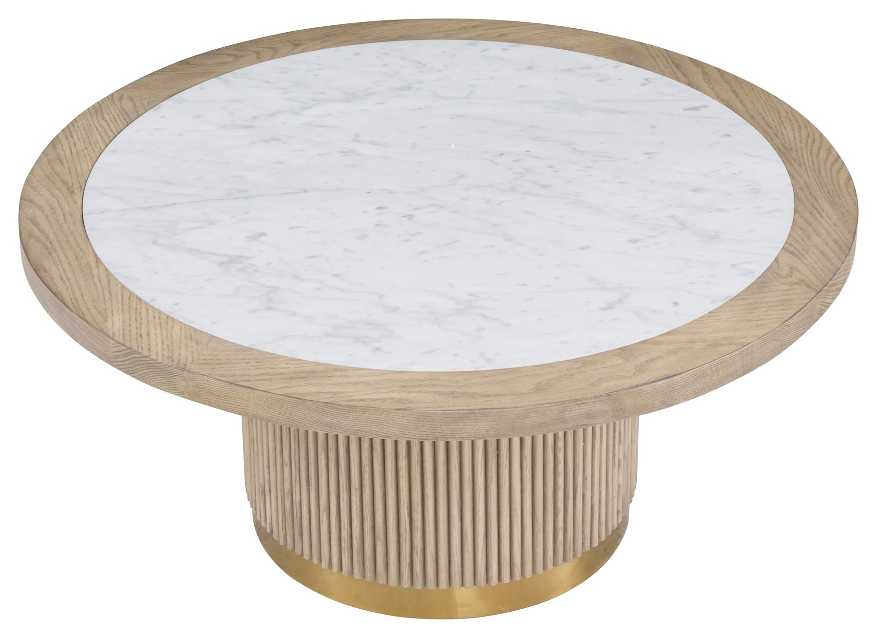 Features An Inset White Carrara Stone Top And Brushed Brass Metal Accent On Base.