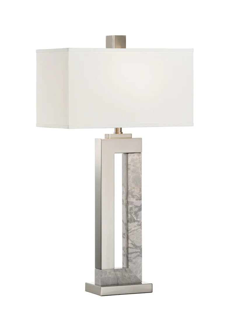 Gray marble and brushed nickel lamp with brushed nickel mounting