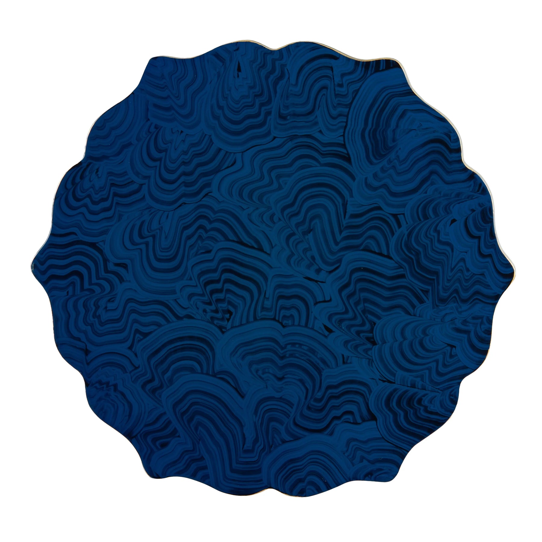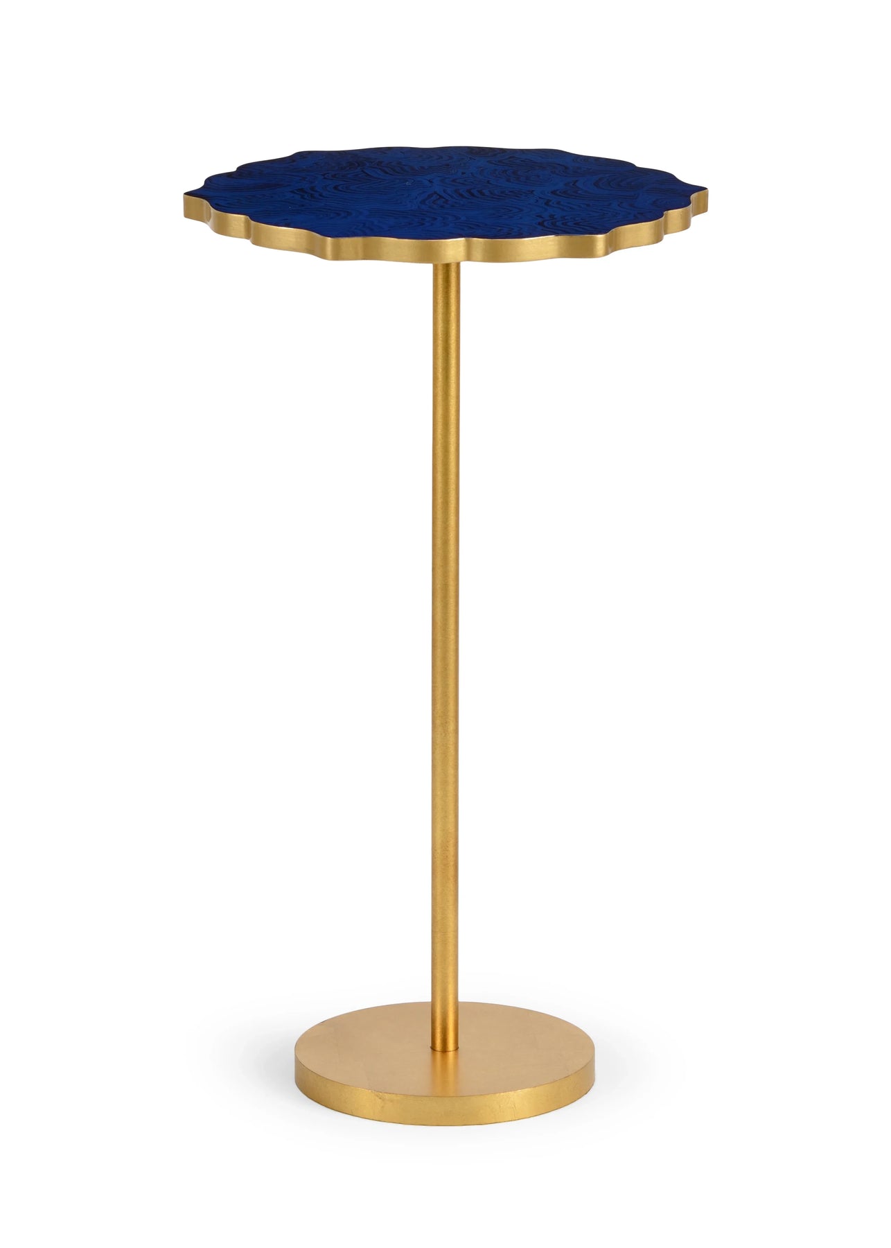 Crafted of iron with a gold leaf finish, this table features a lacquer top with a hand painted blue lapis design. Ideal for holding your drink or remote, add this charming side table beside a chair in your living area.