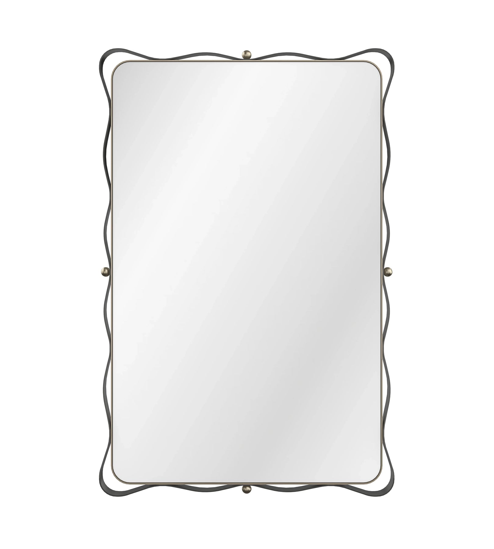 With a rustic yet elegant aesthetic, this rectangular mirror evokes the charms of a French patio garden. Features a metal frame finished in Brushed Gold with a ribbon detail in Craftsman Bronze and decorative balls for minimal adornment. Designed to hang vertically or horizontally, it’s well-sized to style above a console or dresser.