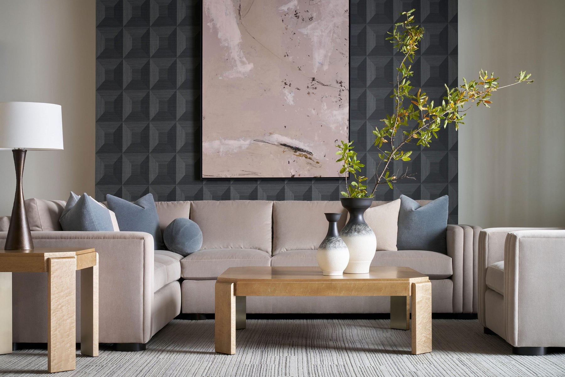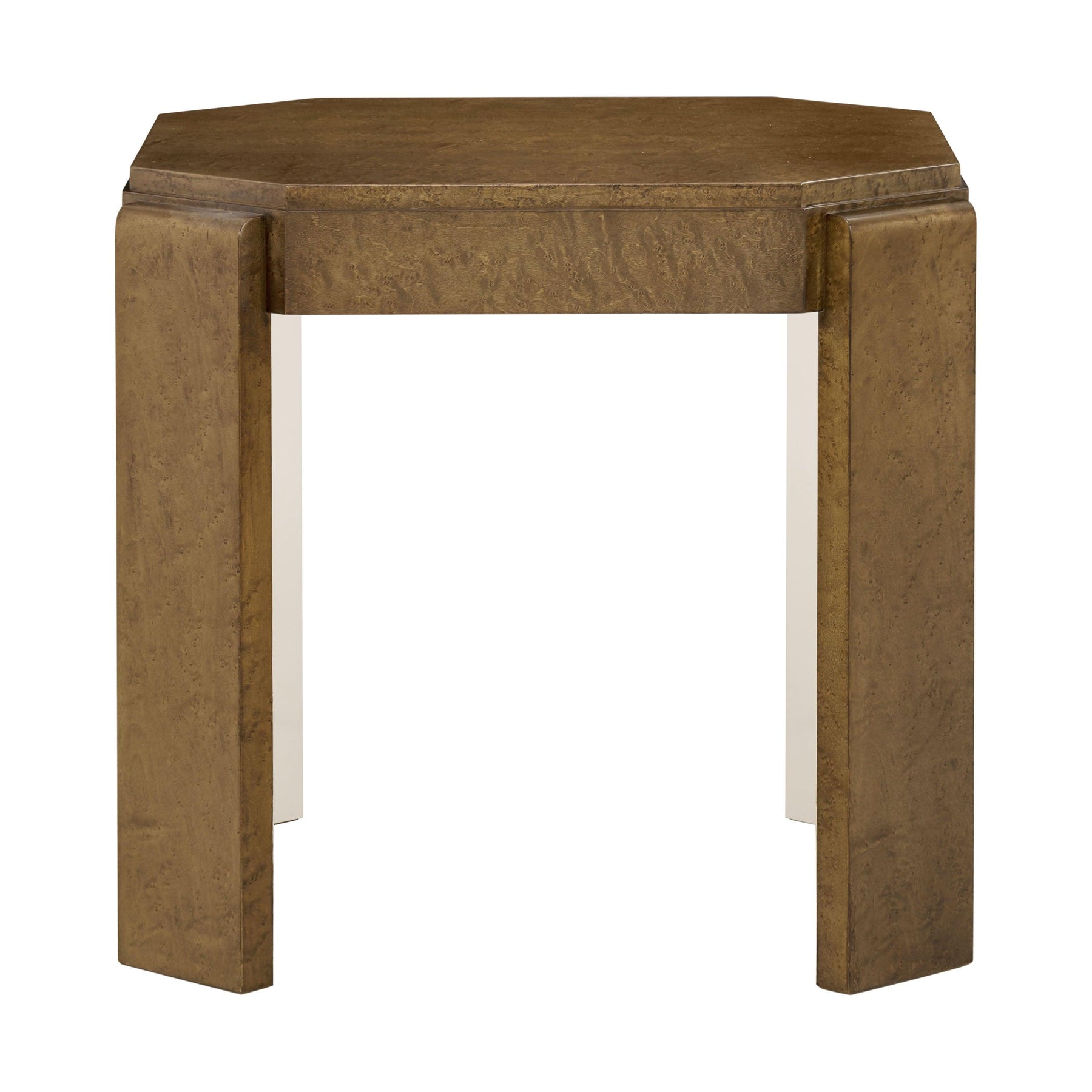 The Origins Side Table II recalls the modern romance of Art Deco. Handcrafted in birdseye maple and accented with brass metal in Starlight. Finished in a choice of Sesame or Landmark.