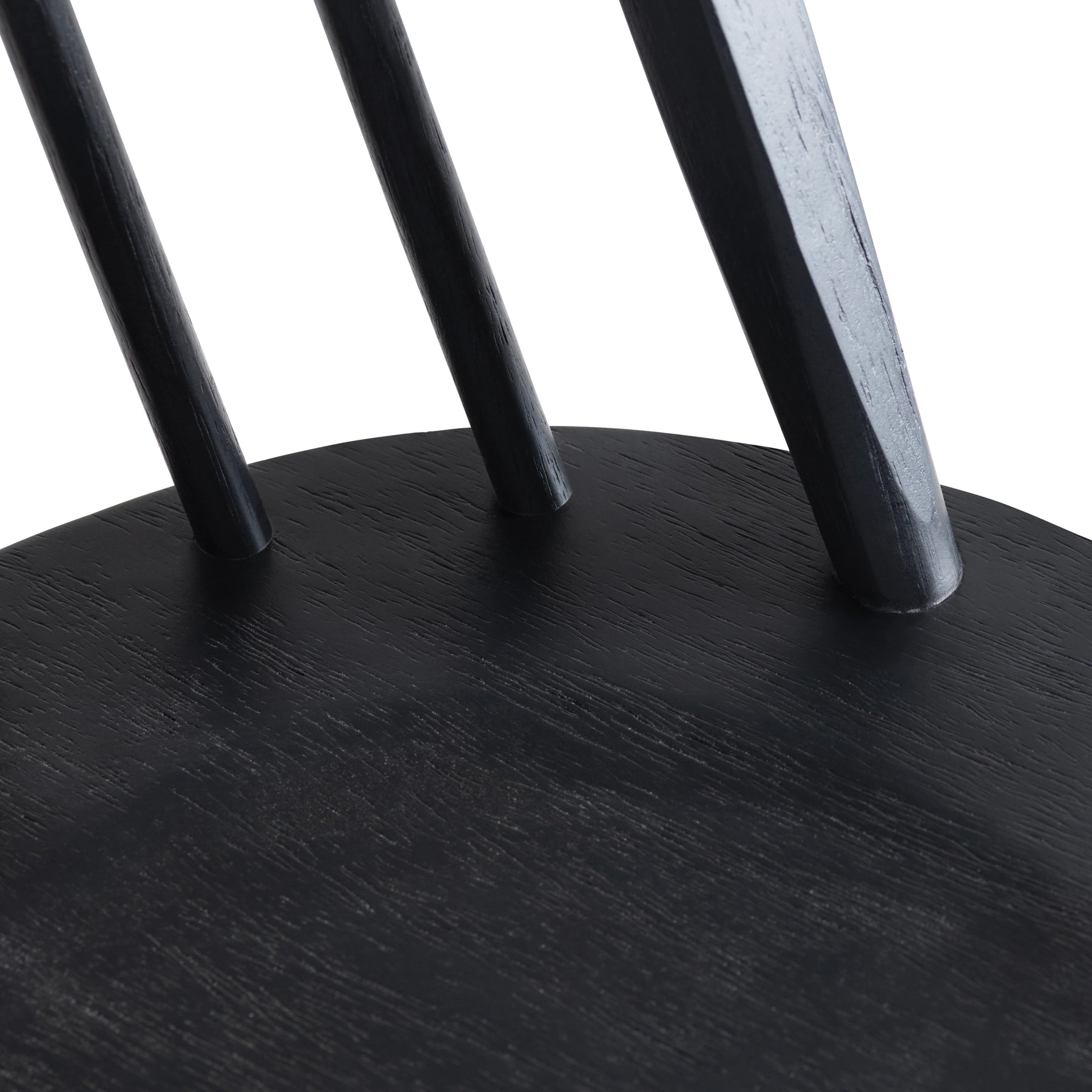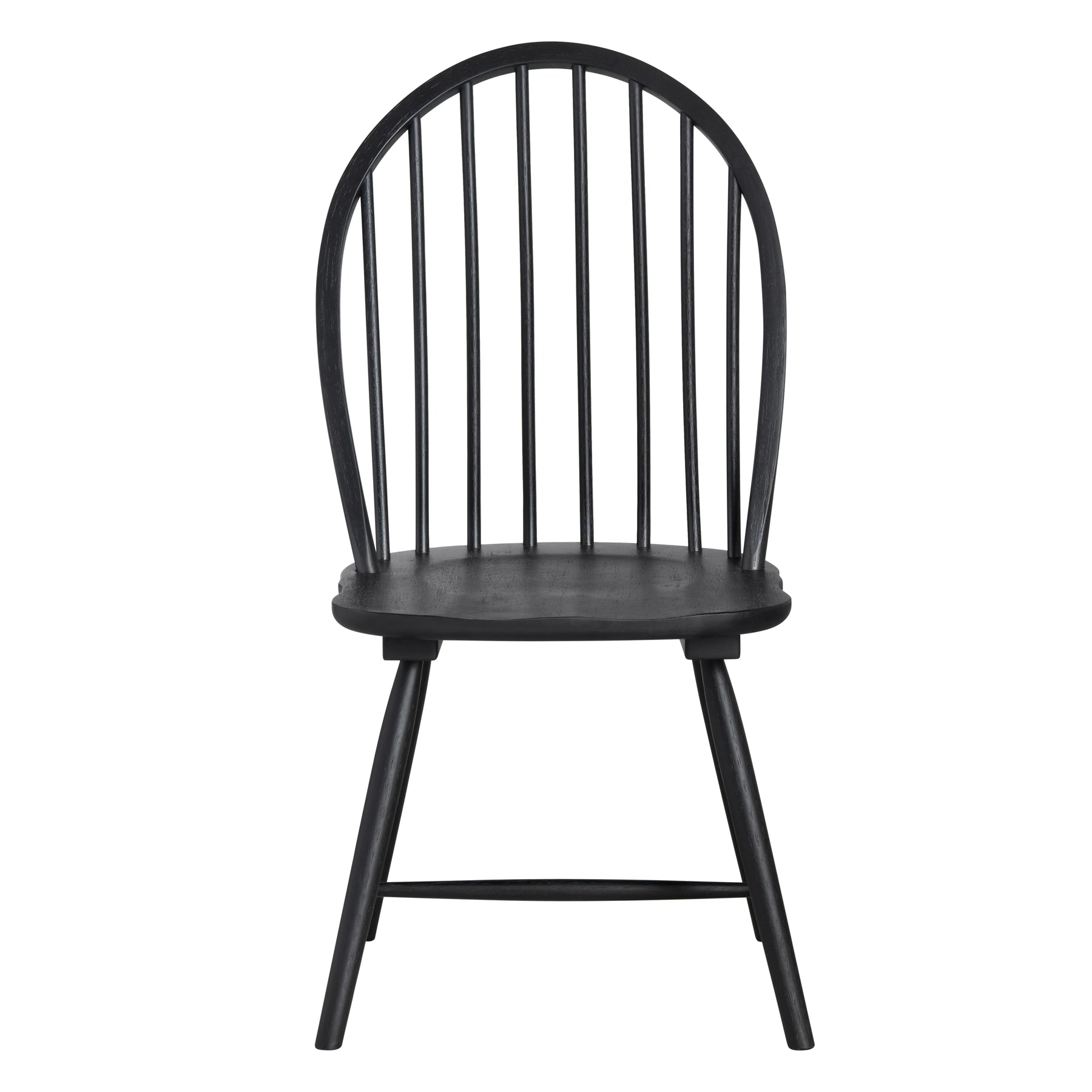 Add timeless charm to your space with this solid wood side chair. Crafted from durable rubberwood, its handpainted smooth black finish exudes elegance while complementing any décor. The classic Windsor-style design, complete with a high back and 18" seat height, offers both style and comfort. An H crossbar provides extra support and stability, ensuring this chair is as sturdy as it is stylish. Perfect for dining or accent seating, this piece blends tradition with modern sophistication. Sold As Set of 2.
