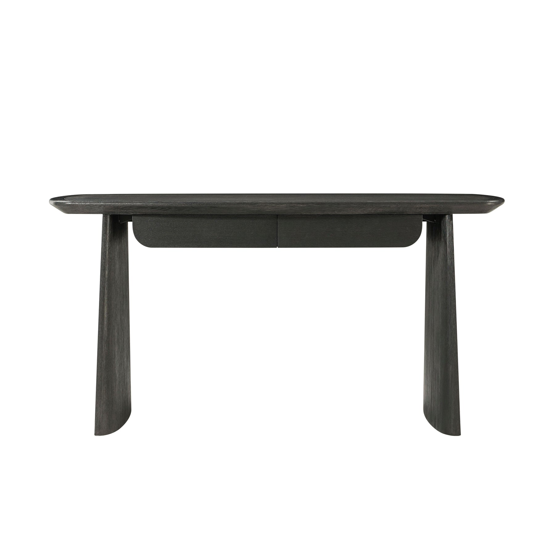 The Repose Desk, with Its Rounded Subtle Barrel Shaped Top with Alternating Quarter Straight Cut Oak Veneers, Stands Squarely on Solid Trapezoid Style Legs. The Facing 2 Drawers has Adequate Enough Space to All Your Writing Needs.