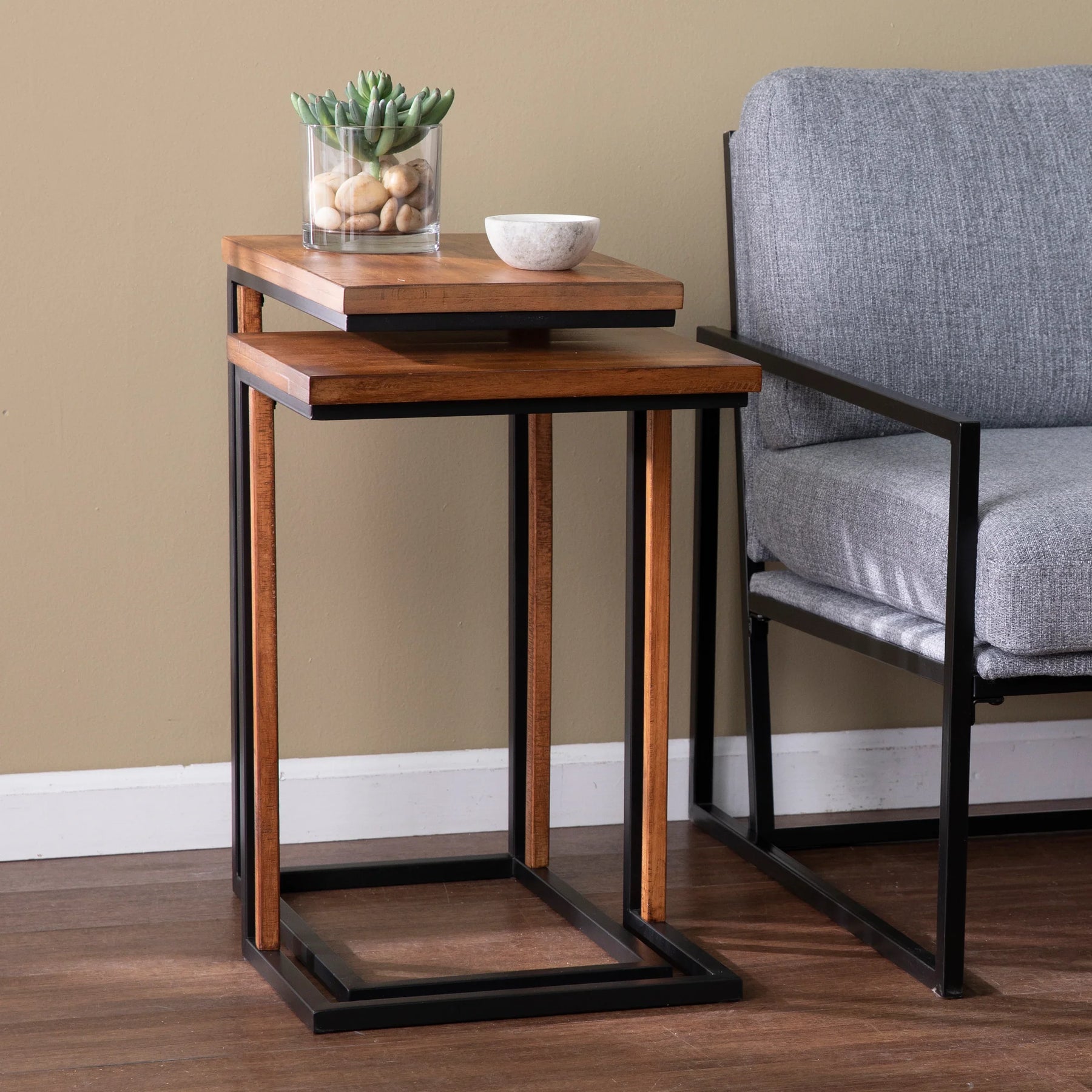 Pull up a table or two with this nesting C-table set. Spacious tabletops offer plenty of room for your laptop or movie snacks, while the convenient, space-saving design nests for easy storage. Rustic tops create a chic, farmhouse feel in your living room or reading nook, bringing unique style in a sleek, mixed-material design. Get extra space where you need it most when you place these nesting tables alongside your sofa or in your open concept living space.
