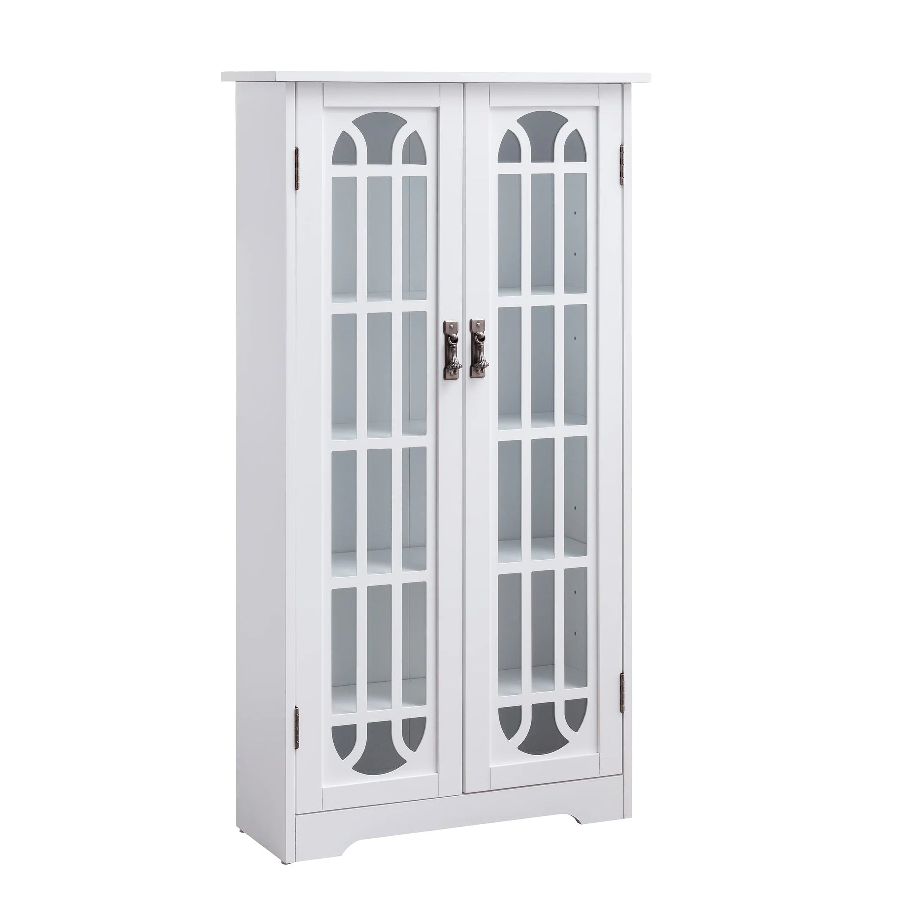 Organize your media with this traditional storage curio. Elegant windowpane latticework crafts a timeless look, while adjustable shelves allow you to customize your storage space. Station in your family room to store your favorite movies and games, or place in your home office to display your book collection and décor. Keep your home neat and tidy with this media cabinet in your game room or open concept living space.