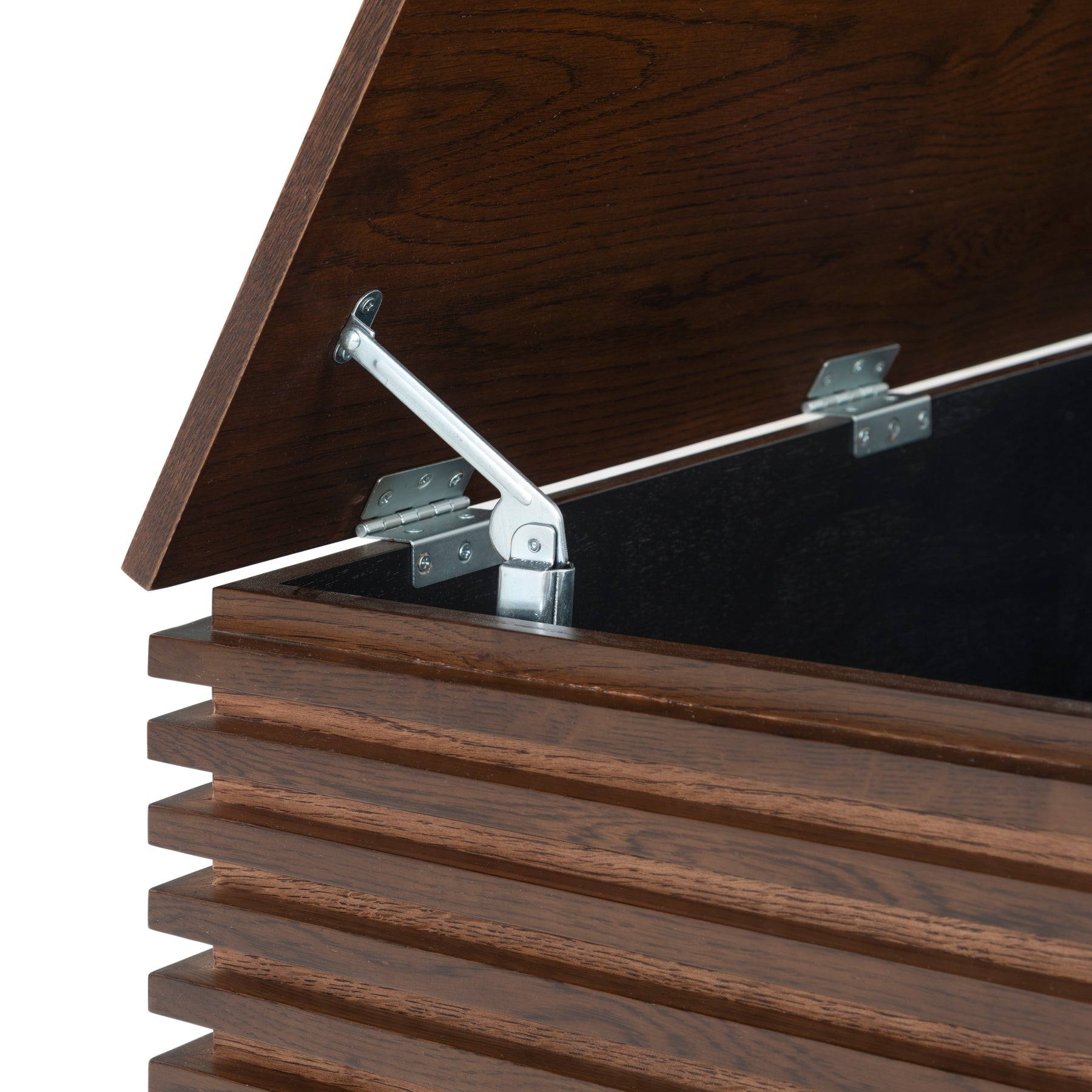 Introducing the Zuzu Wood Storage Bench in a warm walnut finish, where form meets function seamlessly. Crafted from a blend of wood and metal, this piece offers a timeless look that complements any interior. Whether placed in an entryway, living room, or bedroom, its sleek design fits effortlessly into various spaces.
