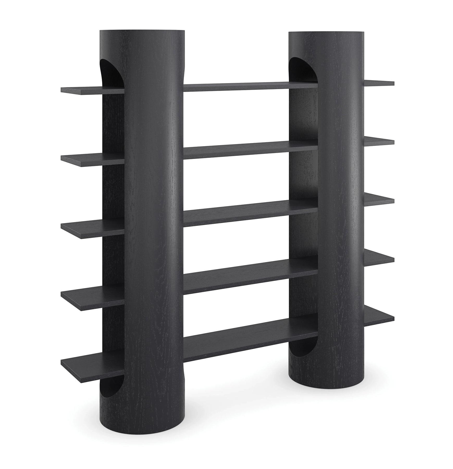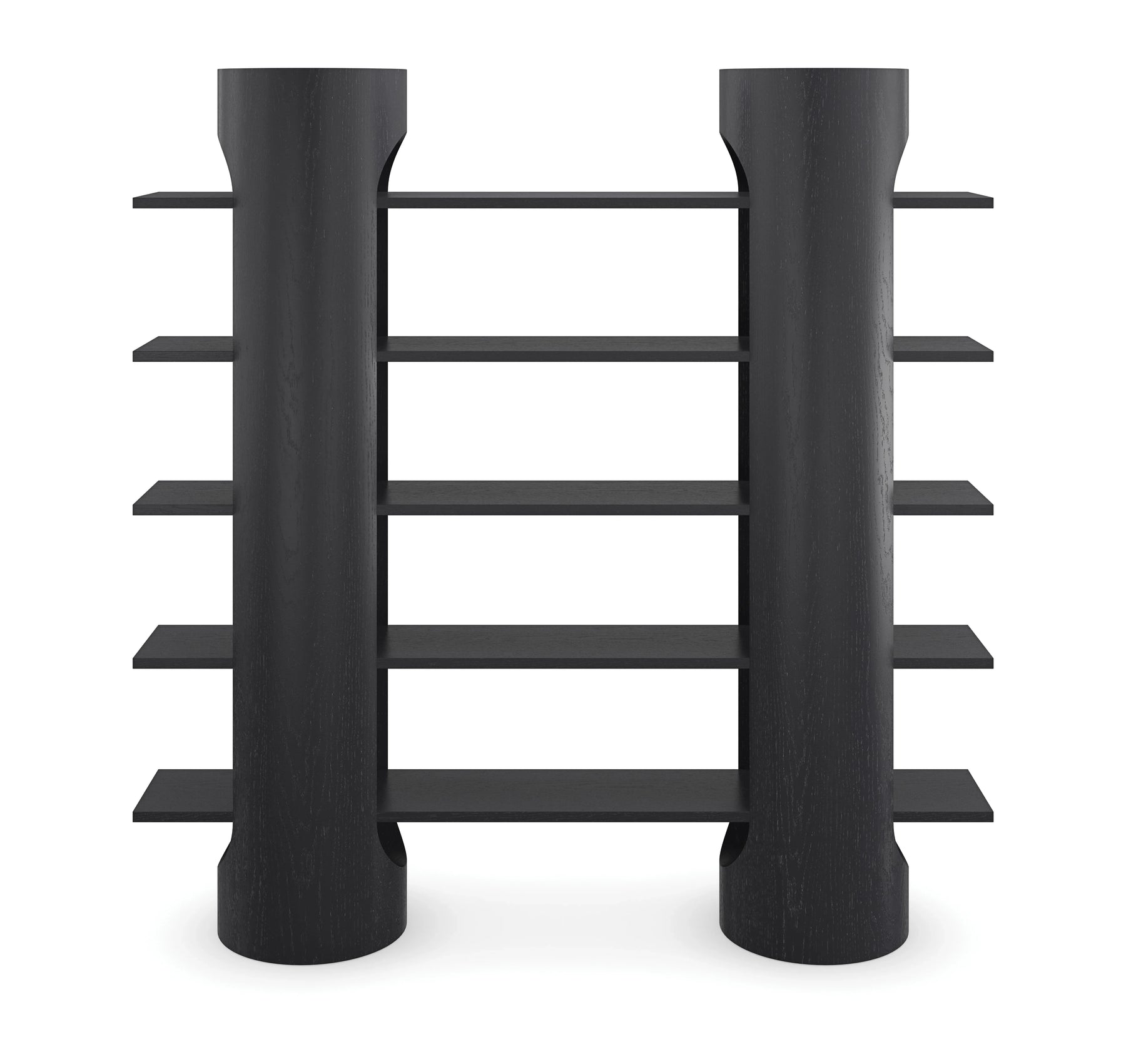 A chic storage option, this bookshelf offers ample opportunity to infuse the room with style and personality. Architectural lines intersect with softly rounded edges, punctuated by a matte black finish that lets you play up contrast and texture. Statement-making in any interior, it features five spacious shelves for showcasing books and decor and keeping essentials in perfect order.