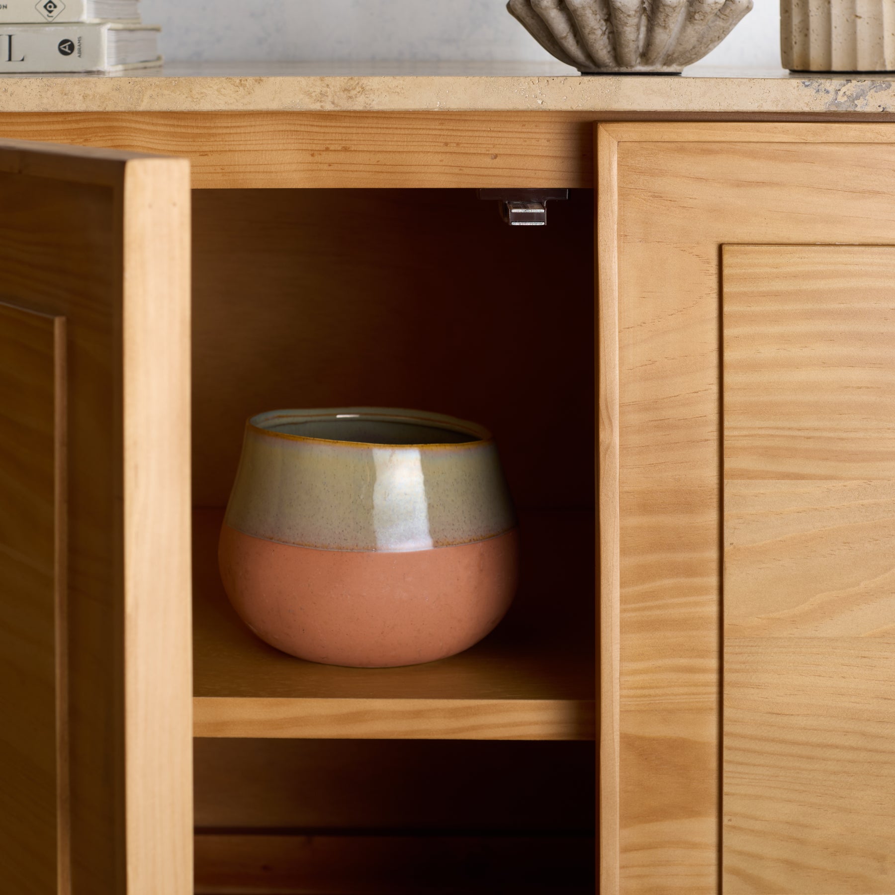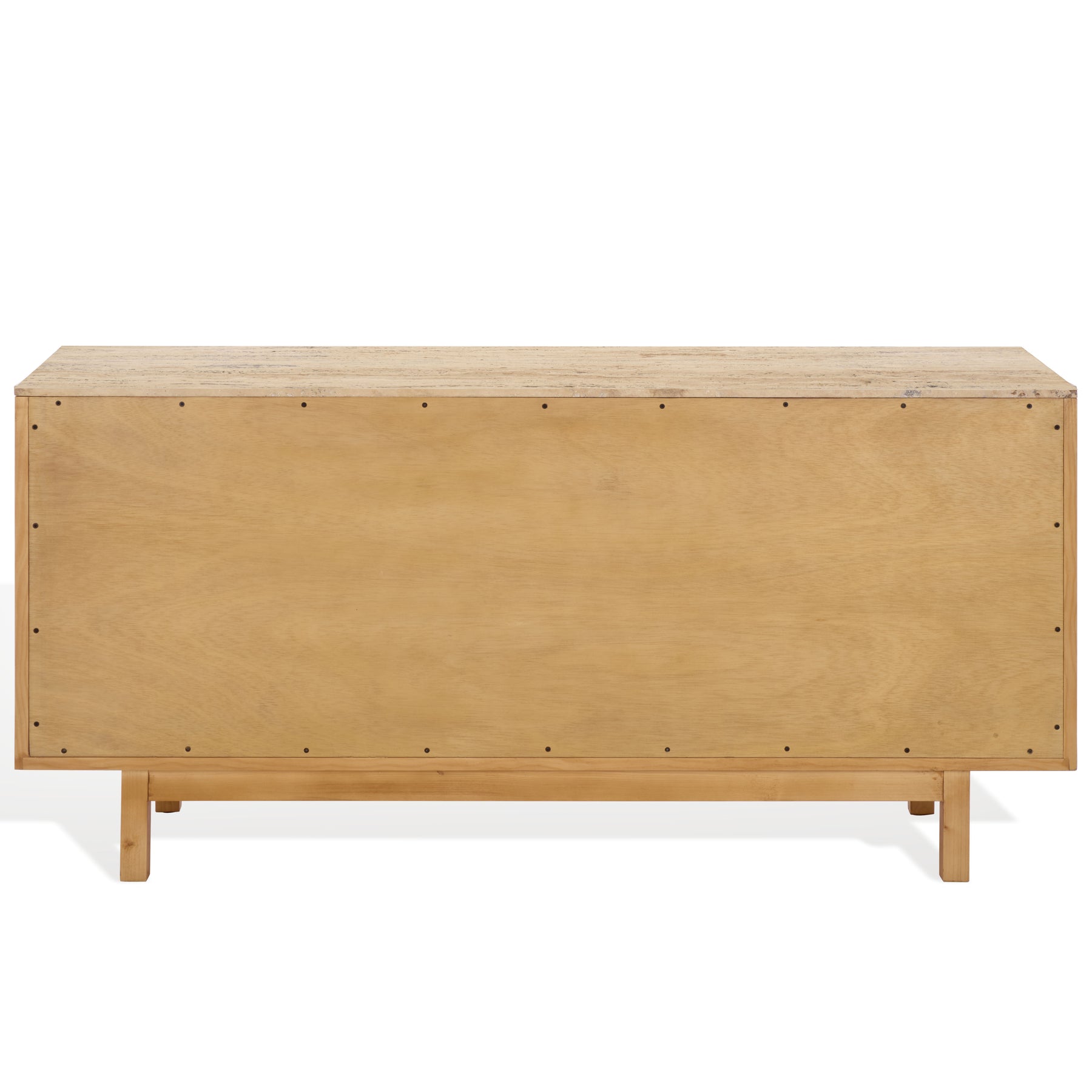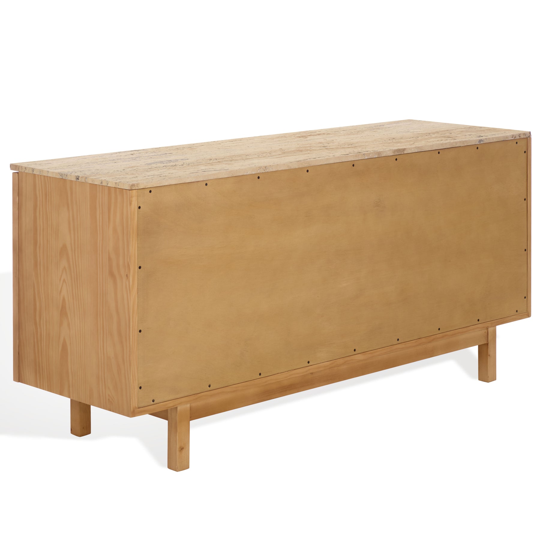 Introducing the Debrianna Travertine Top Sideboard - an extraordinary blend of elegance and modernist detailing, conceived to transform any living space with a touch of refinement. Coming in a natural Lovingly crafted from pine wood and adorned with pine veneer, this sideboard lends an immediate warmth and sophistication to your decor. The highlight of this sideboard is undeniably the beautiful travertine top, making each piece distinctly unique. The travertine offers a touch of vibrant contrast to the natural wood finish, creating a fusion of elemental beauty that is a joy to behold. While the natural stone incorporates subtle color and texture variations that add to the sheer allure of the sideboard. The Debrianna Travertine Top Sideboard, coming in as an epitome of stunning design combined with timeless charm. Spice up your lounges, dining, or bedrooms with this aesthetically pleasing piece. Be the style maven, set new decor dimensions, and let the elegance of the Debrianna sideboard echo throughout your home. Magnificent in style and finish, the Debrianna sideboard is sure to impress.