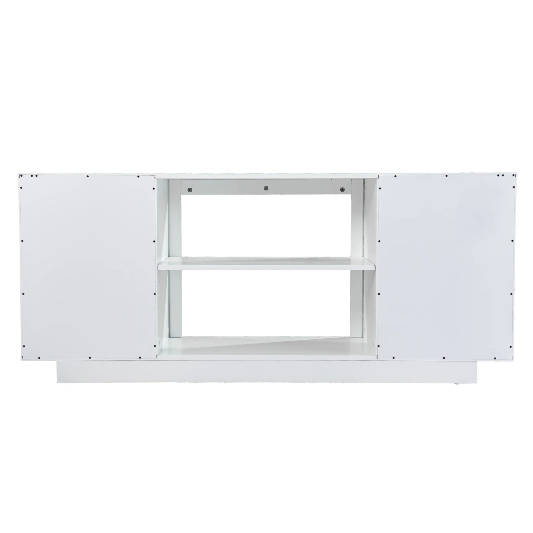 Make the most of movie night with this low-profile media console. A spacious top and center shelves display décor or framed photos, while textured, push-to-open doors tuck away DVDs and video games. Place this two-door TV cabinet in your family room to relax with your favorite show, or add to your open concept space to organize everyday essentials in style. Upgrade your living room design with this media console sideboard.