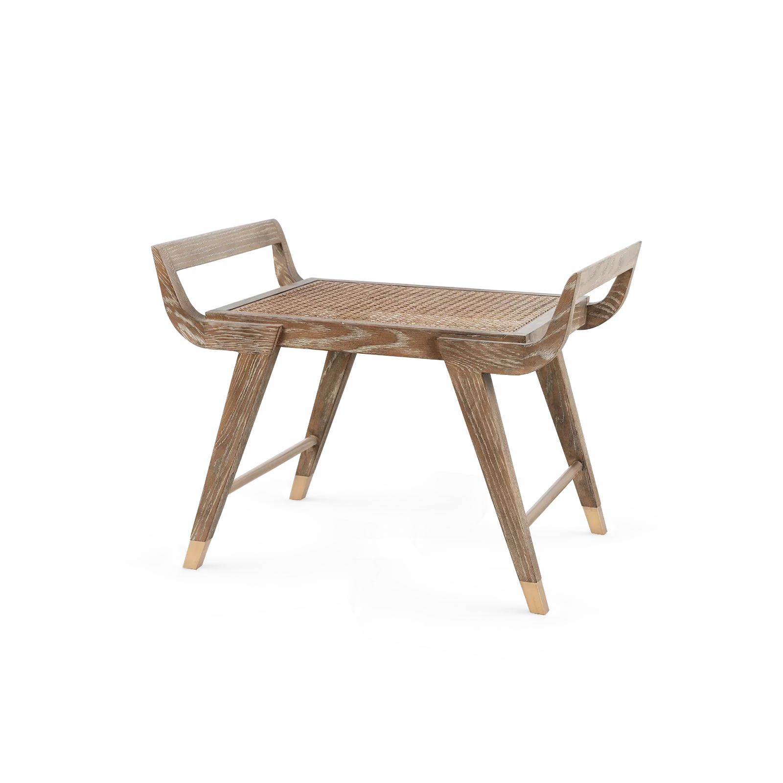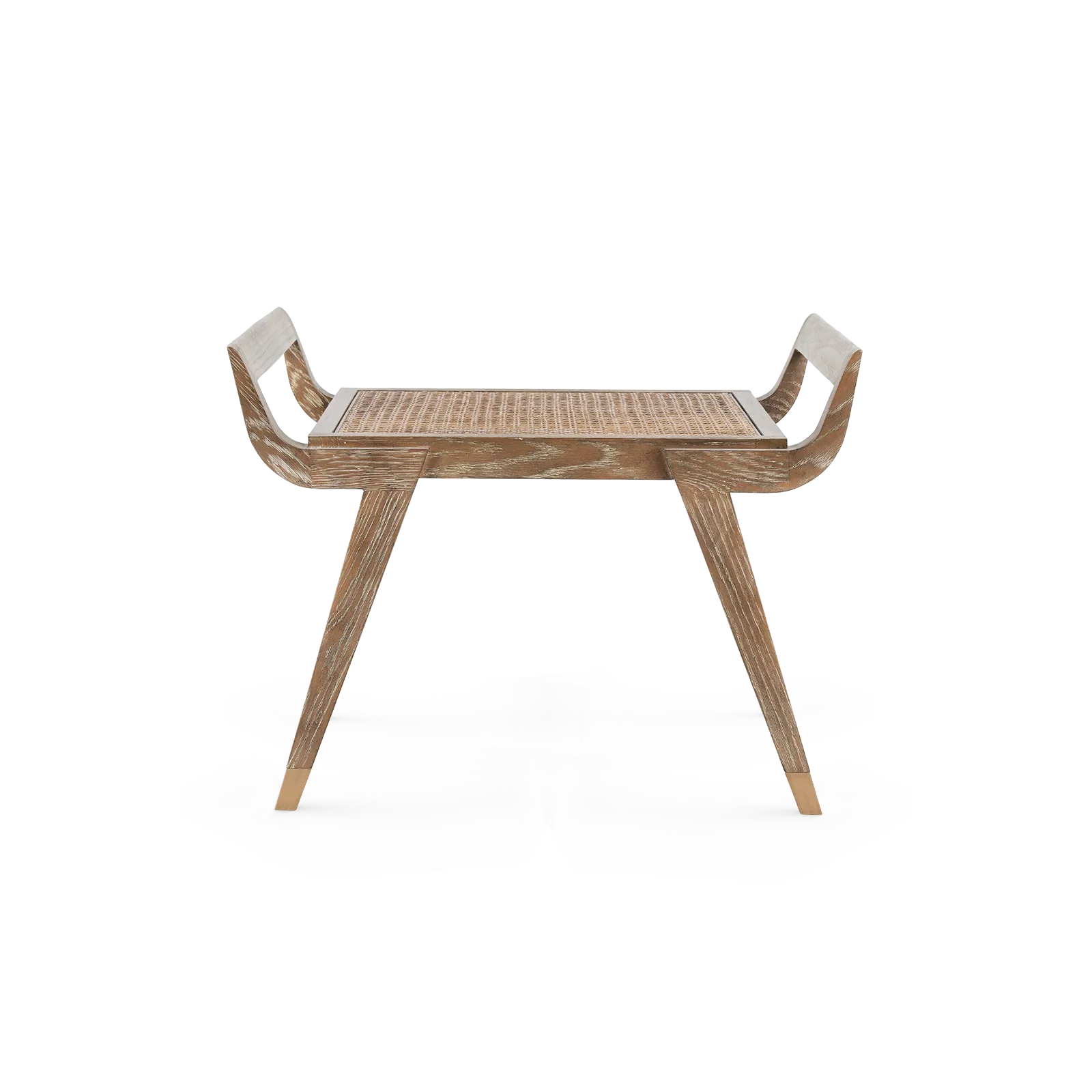 Crafted from oak with a cane seat stained to match the wood finish, the Delon Stool exudes timeless sophistication. Embellished with sabots for refinement and winged arms which make it easy to pick up and move, its design blends vintage charm with modern allure and practicality. Versatile and stylish, the Delon Stool complements entryways, hallways, the foot of a bed, or serves as seating at a casual dining table.