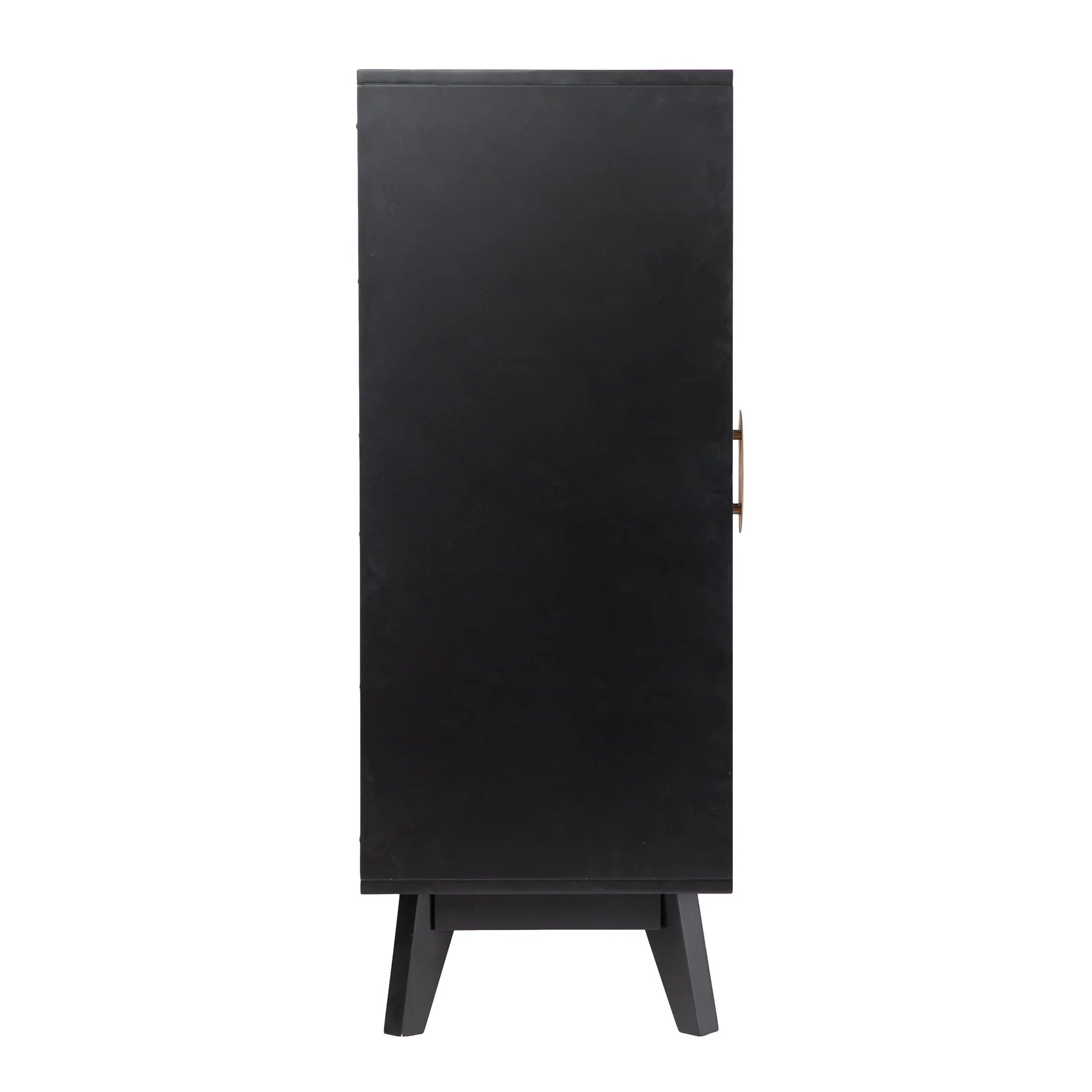 Naturally elevate your home with this rattan storage cabinet. The striking combination of a black finish and two rattan doors add a touch of contemporary elegance and rustic charm to your home. The interior shelves allow for organization, while gold handles provide a luxurious accent to enhance your modern aesthetic. Add this double-door cabinet to your living room to upgrade your decor, or place in your entryway as fashionable storage. Crafted with meticulous attention to detail, this black cabinet seamlessly combines modern design, natural texture, and stylish functionality, making it a must-have addition to any room.