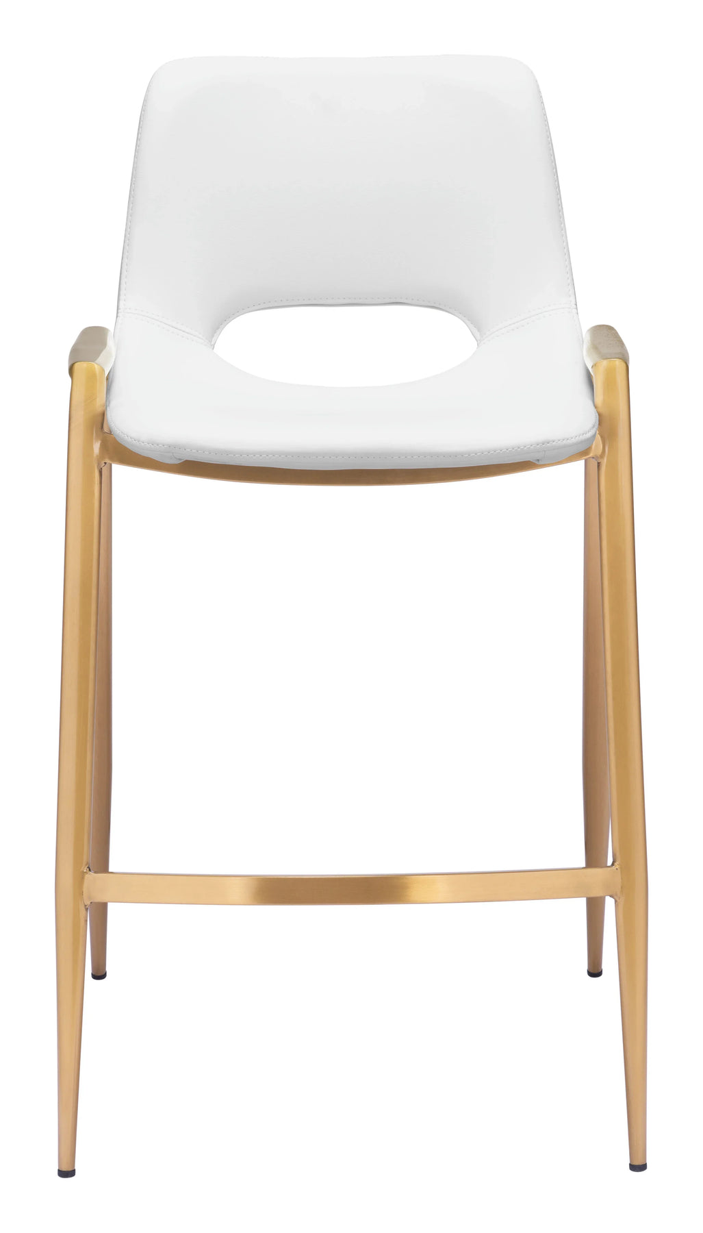 This counter stool has mid century modern urban lines and looks great in any space, with a heavy duty vinyl covering sturdy steel frame and finished legs in gold semi-gloss finish frame, fits in any home kitchen, dining area, or bar and is durable for hospitality use.