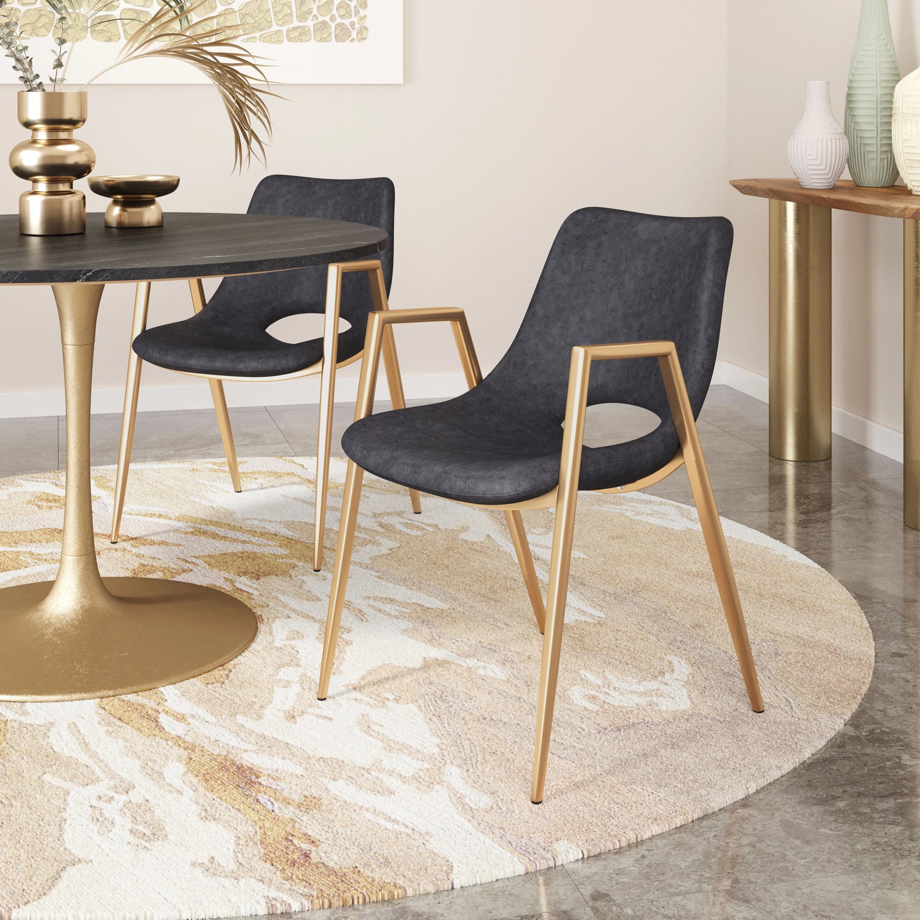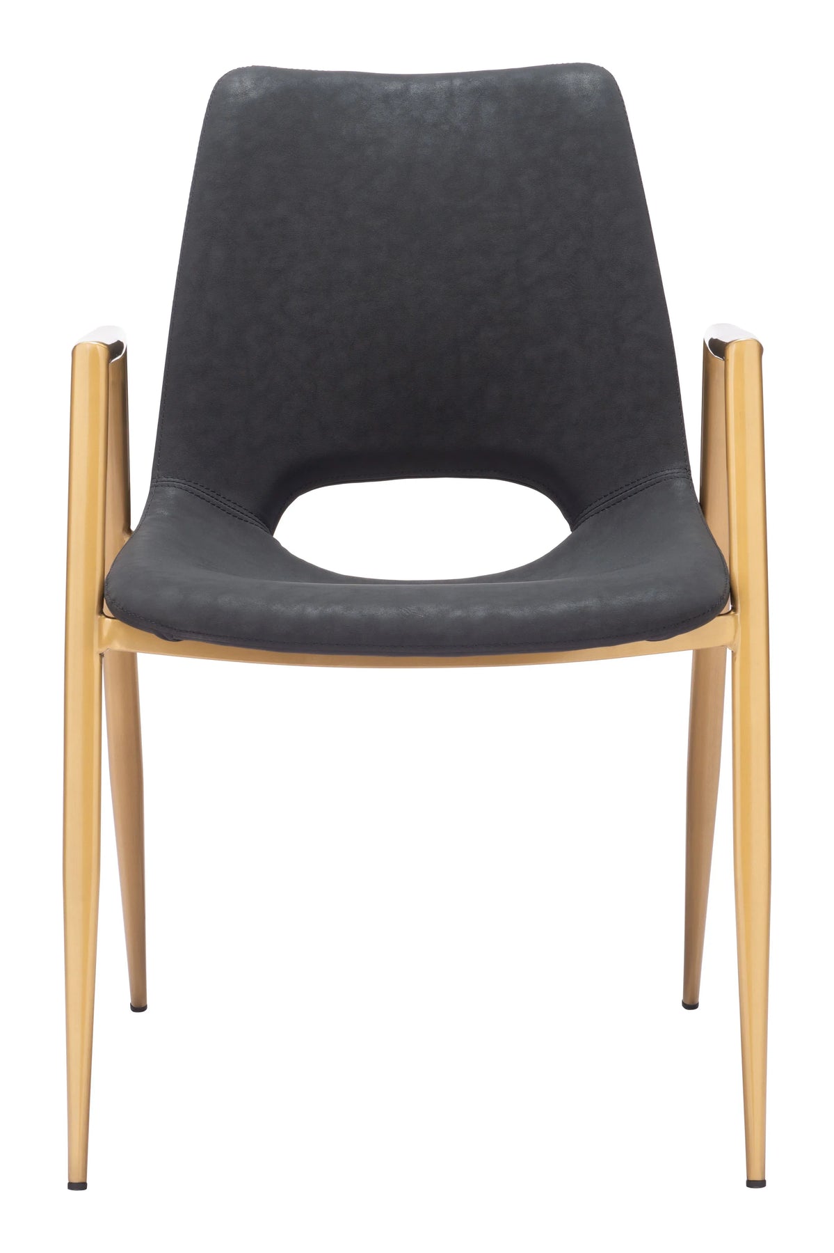 This dining chair has mid-century modern urban lines and looks great in any space, with a heavy-duty vinyl covering sturdy steel frame, and finished legs in a gold semi-gloss finish frame, fits in any home kitchen, dining area, or bar and is durable for hospitality use.