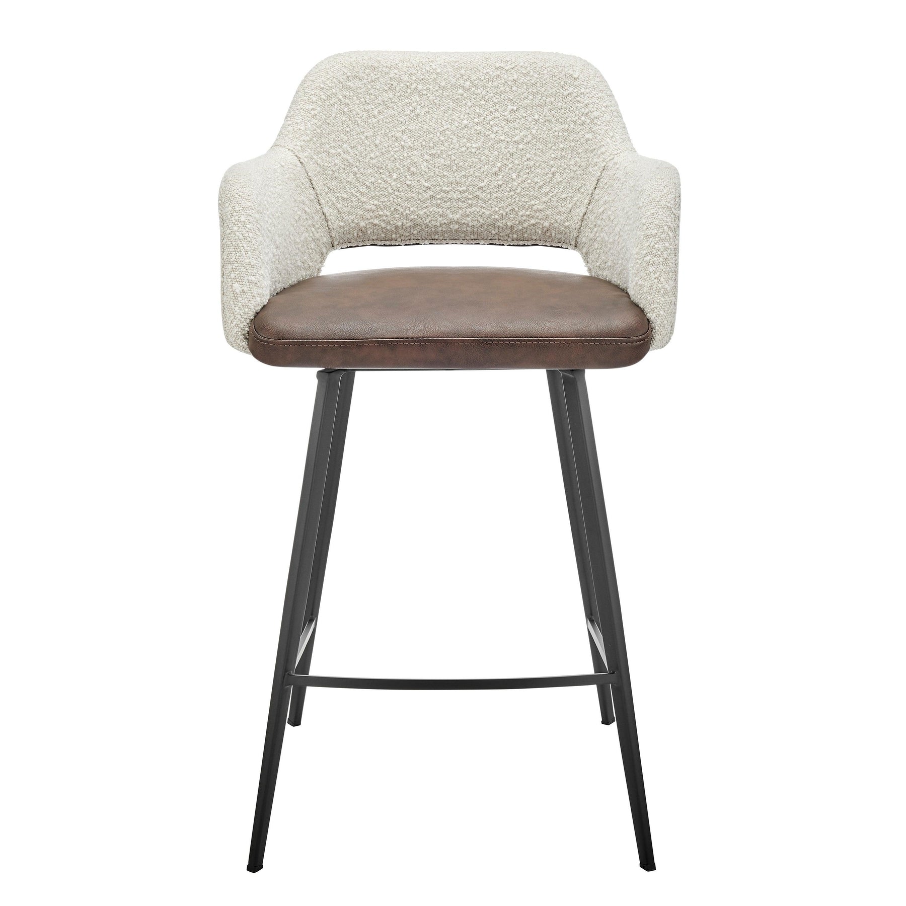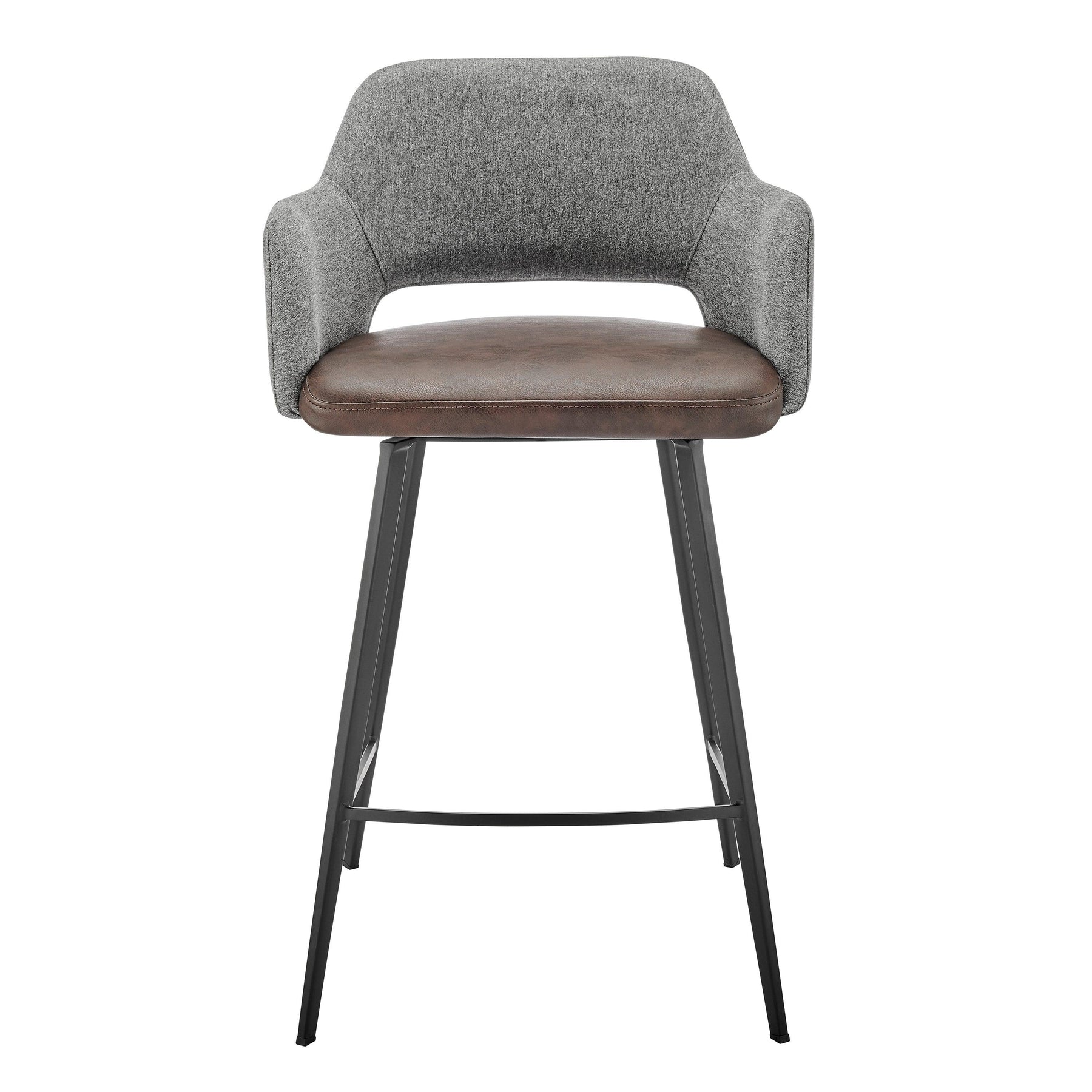 The Desi Collection rolls in with a vintage distressed soft leatherette seat paired with durable fabric back and armrests. Matte black powder coated steel legs and footrest.