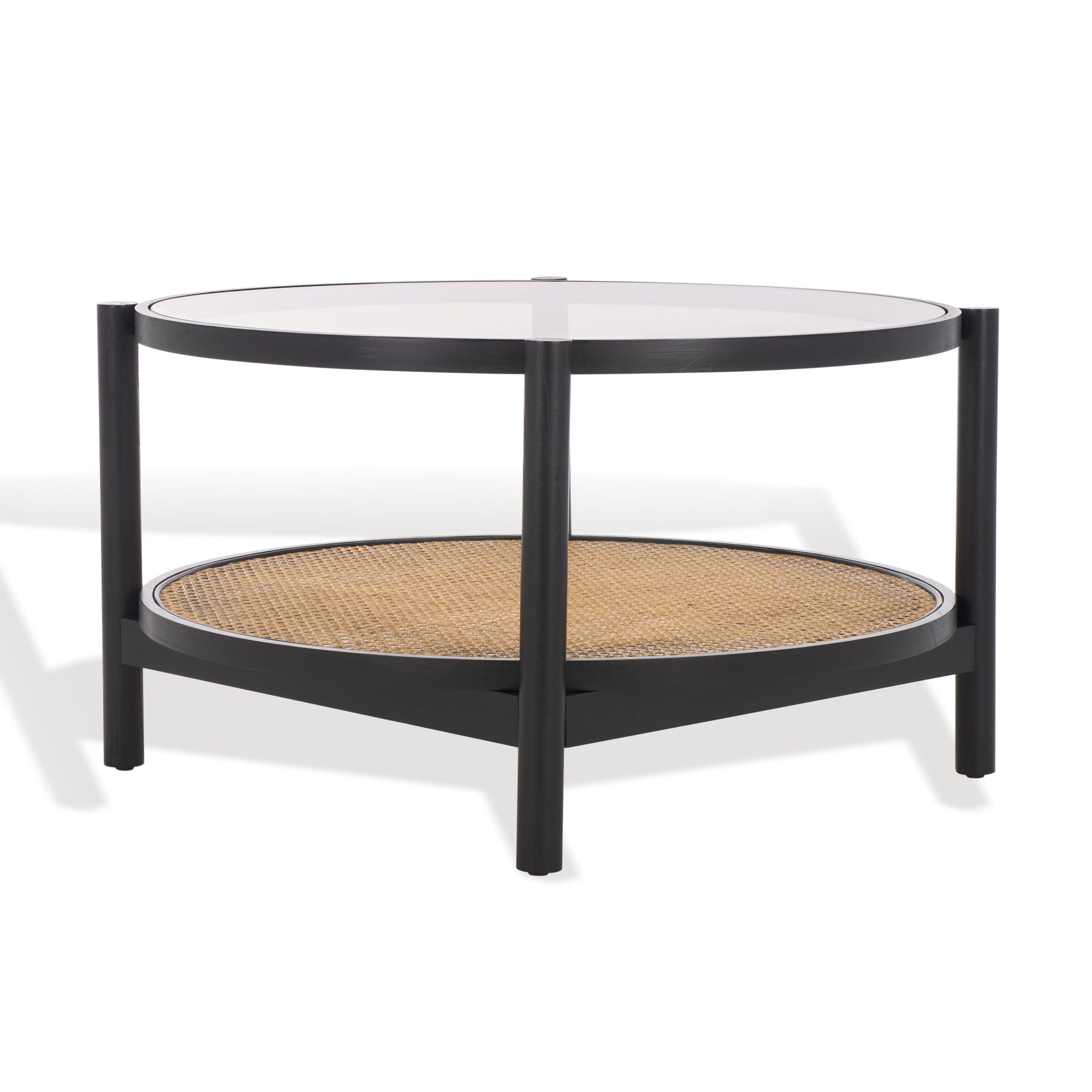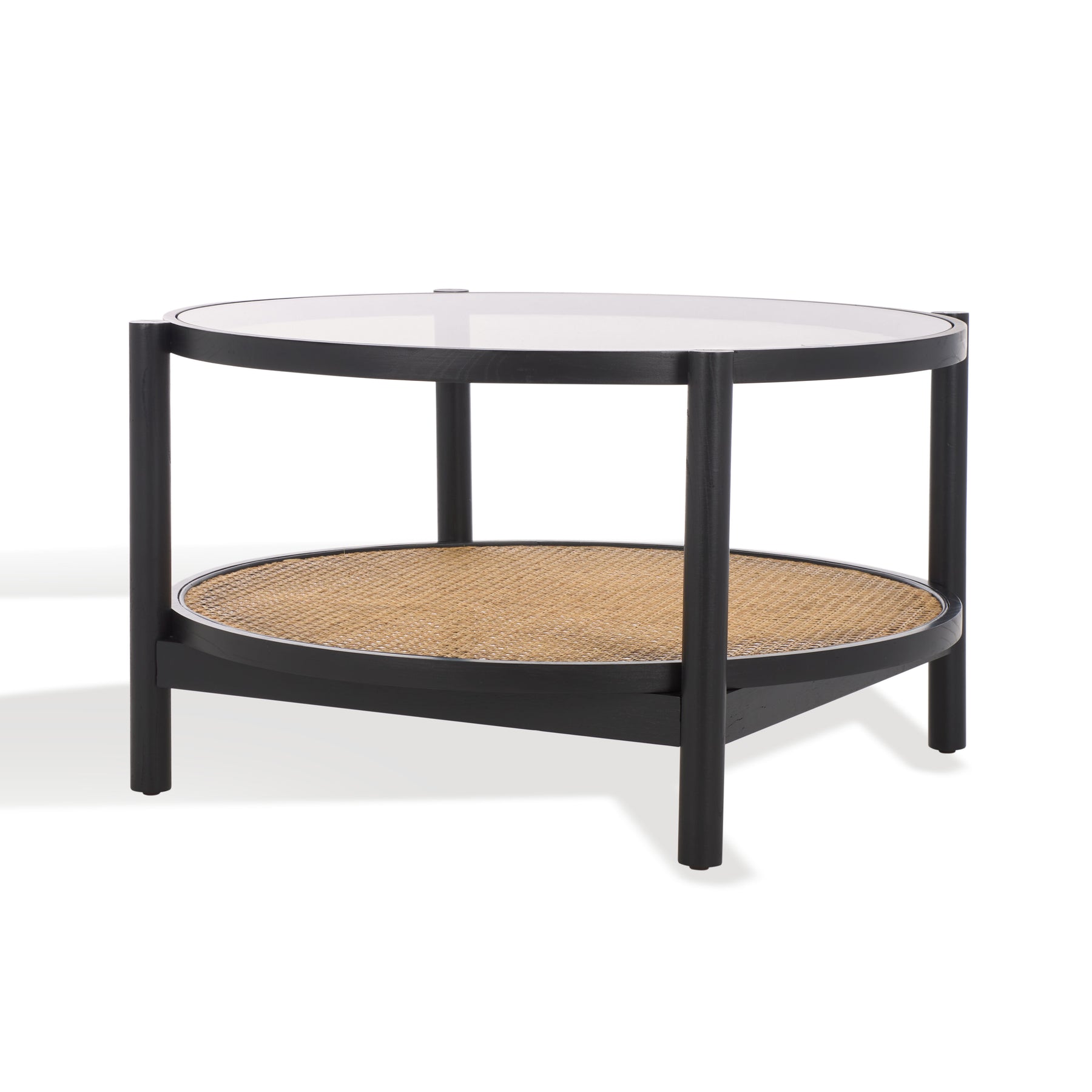 Invite a beautiful harmony of textures to your living space with the Karyna coffee table. Our two-tiered coffee table features a tempered glass top and elegantly weaved rattan base. The two surfaces are held together with slender elm wood cylindrical legs. Showcasing a sleek and unexpected textural mix, our coffee table brightens up your home with its breezy and refreshing design. Both stylish and functional, the table lends an additional surface at the bottom to display your beloved items or keep essentials within easy reach.