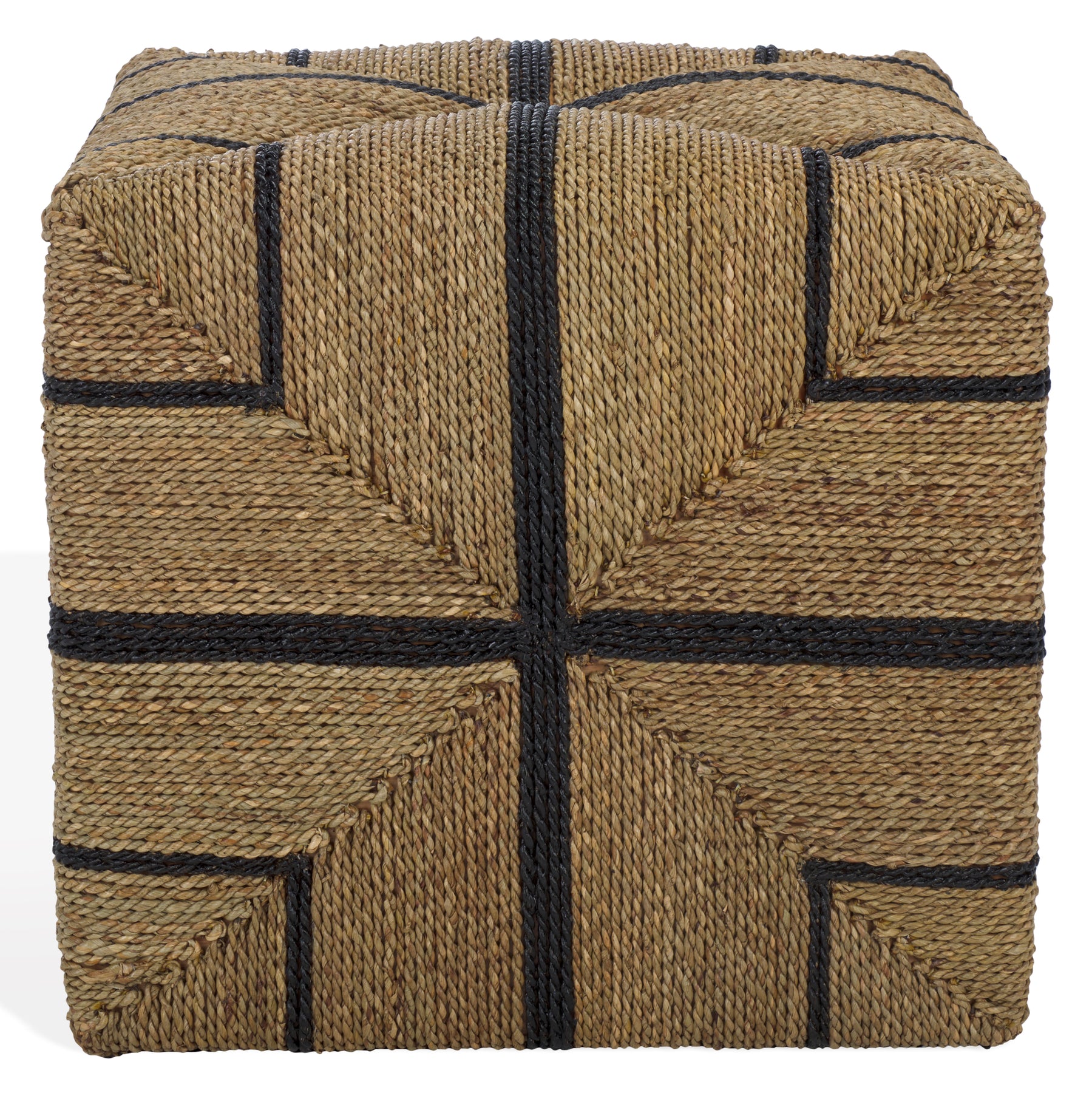 Introducing the Liatasha woven seagrass ottoman in natural and black a stunning addition to your living space that combines style and functionality. Crafted from earthy seagrass and sturdy mahogany wood, this ottoman brings a touch of nature indoors. The natural tones create a calming atmosphere, while the black accents add a modern flair that complements a variety of interiors.