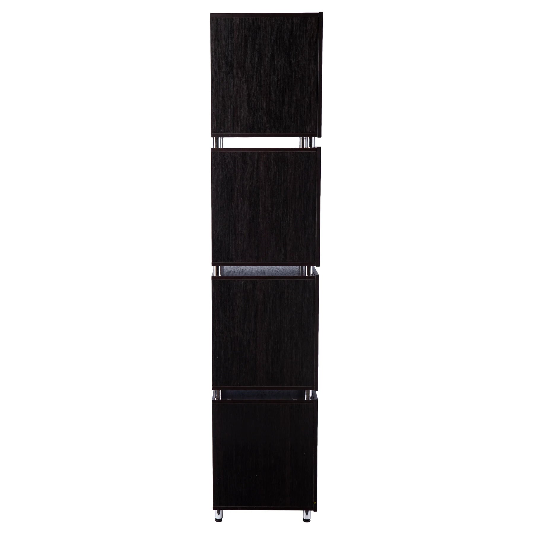 Take advantage of vertical storage with this 4-tier bookcase. Cube-inspired shelves offer plenty of space for your book collection or assorted knickknacks, while the barely-there metal frame creates a sleek, floating look. Tuck this tall etagere into your home office to organize files and documents, or station in your living area to display photos and potted plants. Your space stays organized and clutter-free when you bring home this small space storage shelf.
