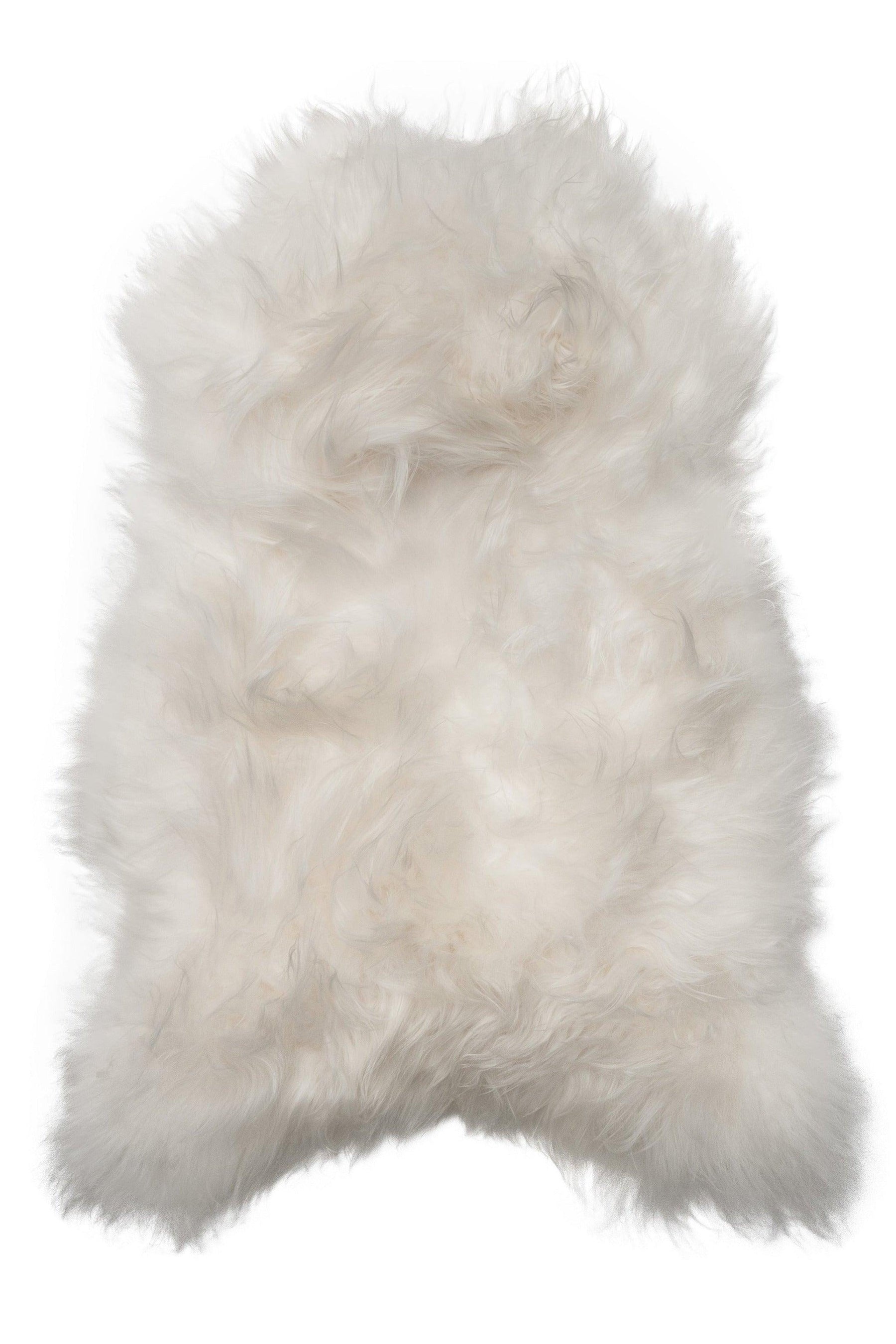 This wild and woolly Arctic sheepskin rug, from the snowy landscapes of northern Europe, is the ultimate in sheepskin rugs. The unique shaggy sheepskin fibers bring raw natural texture into any room. 100% Sheepskin.