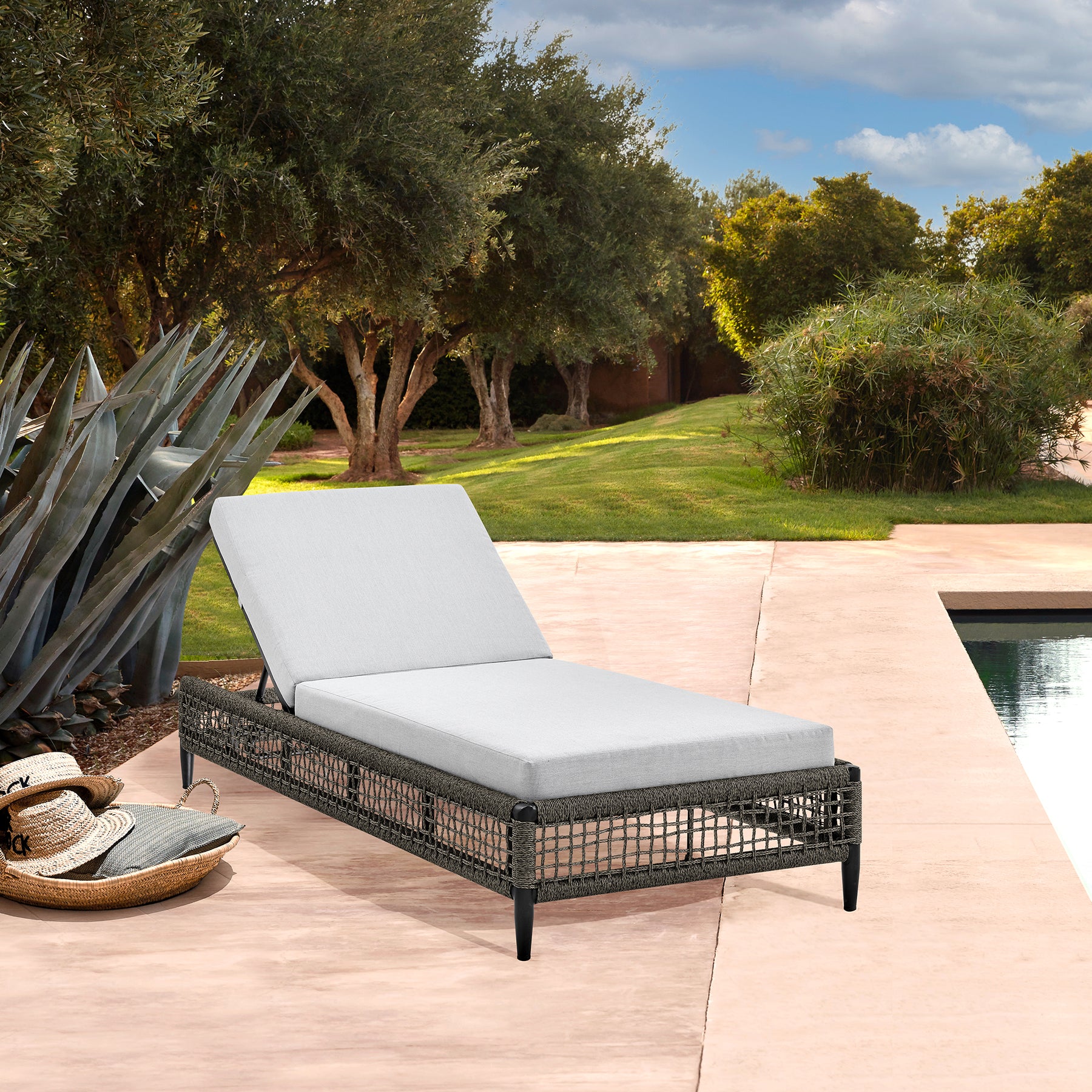 Step up the lounging factor of any outdoor space with the Alegria Outdoor Chaise Lounge Chair from Armen Living. Sleek and elegant, this chaise can serve as a comfy and inviting addition to your backyard patio. The rope that’s wrapped around the base of the chaise is treated to be protected from water, UV, oil, and fading. The lightweight aluminum frame features a multi-layer powder coating for further effective protection from the elements and everyday wear and tear, making this an ideal outdoor furniture piece. The light gray cushions not only feature high-density foam that will allow for many hours of comfortable seating; the cushions also feature a zipper closure that allows for easy removal and cleaning! This piece of outdoor patio furniture can vouch for a chic and modern appeal to compliment any space whether it’s next to your pool, on a rooftop patio, or in your backyard near your garden. The chaise features 5 different reclining positions for ultimate convenience and a generously cushioned seat for a comfortable stay. The aluminum frame is lightweight and makes this chaise outdoor chair with cushions easily portable so that you’re able to follow the sun or shade for an enjoyable outdoor experience. The Alegria Chaise Lounge Chair is a perfect piece of outdoor furniture, it supports up to 330lbs and has a seat height of 15 inches.