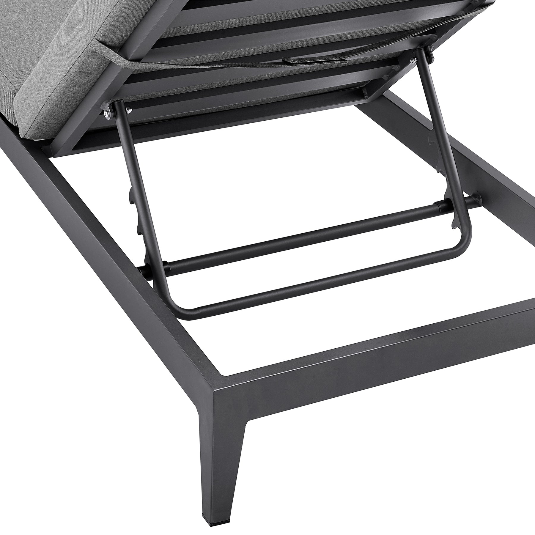 Lay out and relax with the Argiope outdoor chaise lounge chair from Armen Living. Featuring a sleek and minimal silhouette, the chaise lounge chair serves as a casual and stylish addition to your outdoor or patio space. This beautiful chaise lounge chair is the perfect piece of outdoor furniture, and the aluminum construction also features a multi-layer powder coating for further effective protection from UV, weather, rust, and everyday wear, and tear. The high-density foam cushion features beautiful dark gray upholstery and a zip closure that allows for easy removal for cleaning. Lightweight and durable aluminum framework make the Argiope lounge chair easily portable so you can follow the sun or shade for an enjoyable outdoor experience. The Argiope has 5 convenient reclining positions. This chic outdoor chaise lounge chair is a staple when it comes to outdoor patio furniture, it’s functional, stylish, and most importantly durable! The simple addition can make any outdoor terrace, porch, backyard, poolside, garden, or deck of any size, a relaxing destination. The Argiope features a dark gray finish that compliments the dark gray upholstery, it supports up to 330lbs and has a seat height of 13 inches.