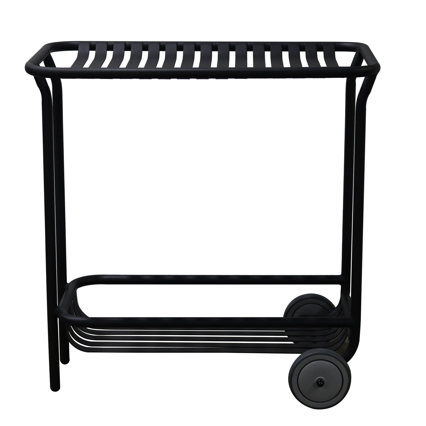 This outdoor cart's exquisite slat design and gleaming surface make it look great on your patio, in your garden, or anywhere else indoors or out. Made of powder-coated steel, this cart is rust, corrosion, and water-resistant for long-lasting use.