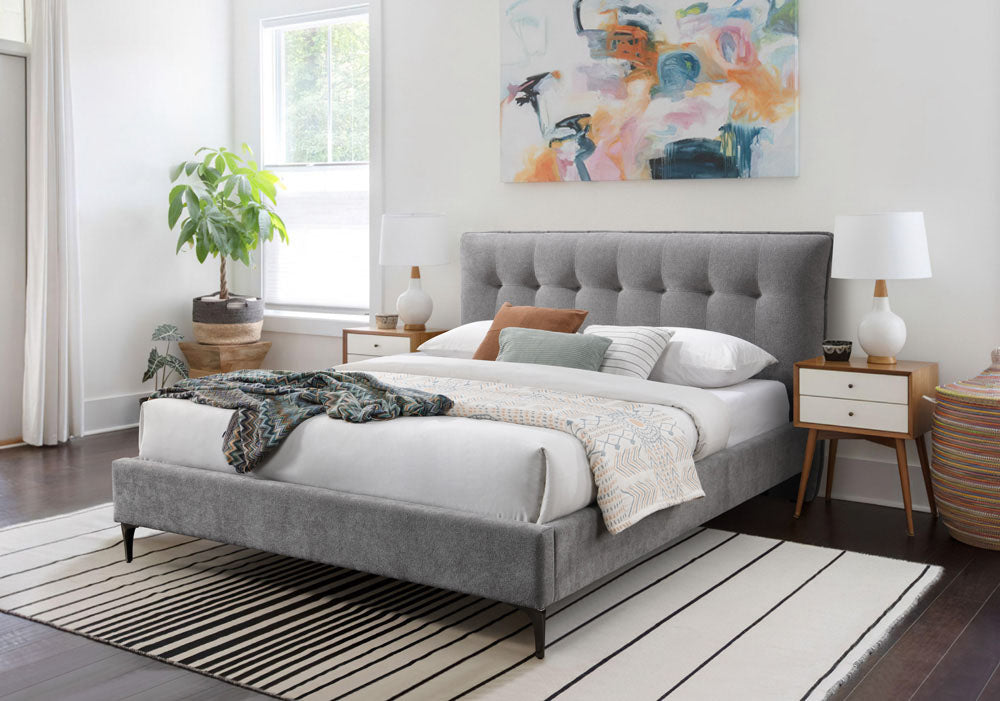 Elevate your bedroom with the REXSIE Tufted Headboard RV King Bed available in dark grey and Black. This meticulously crafted piece effortlessly merges elegance with functionality, making it a standout addition to your space. The headboard features a sophisticated tufted design, adding a touch of artistry to its classic silhouette.