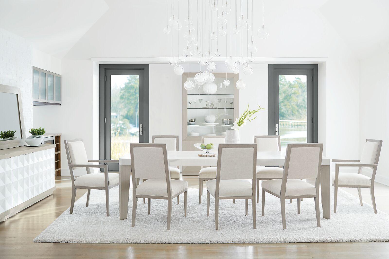 With a Linear White finish applied through Bernhardt's rigorous, multi-step process, the Axiom Dining Table Rectangle achieves the depth and richness of surface that distinguishes the finest case furniture.