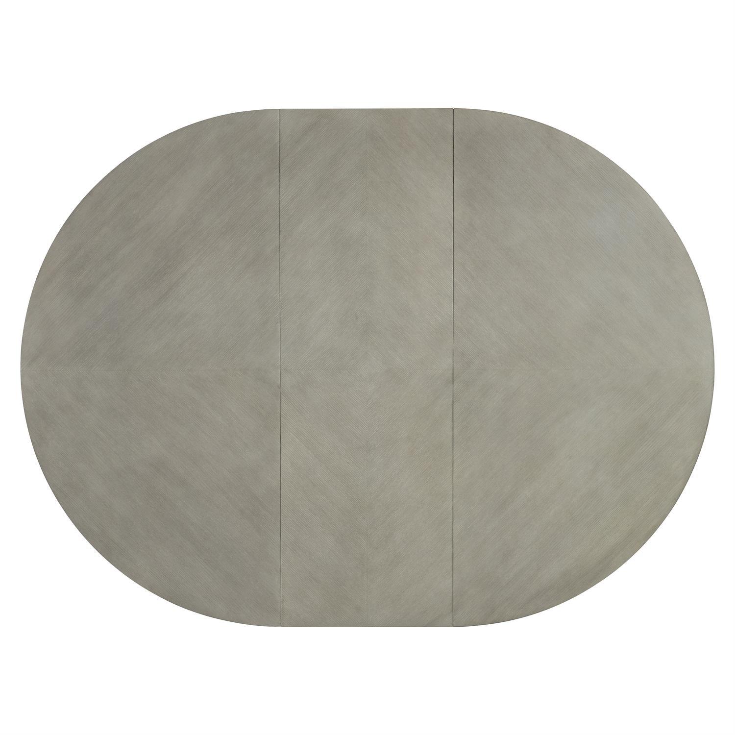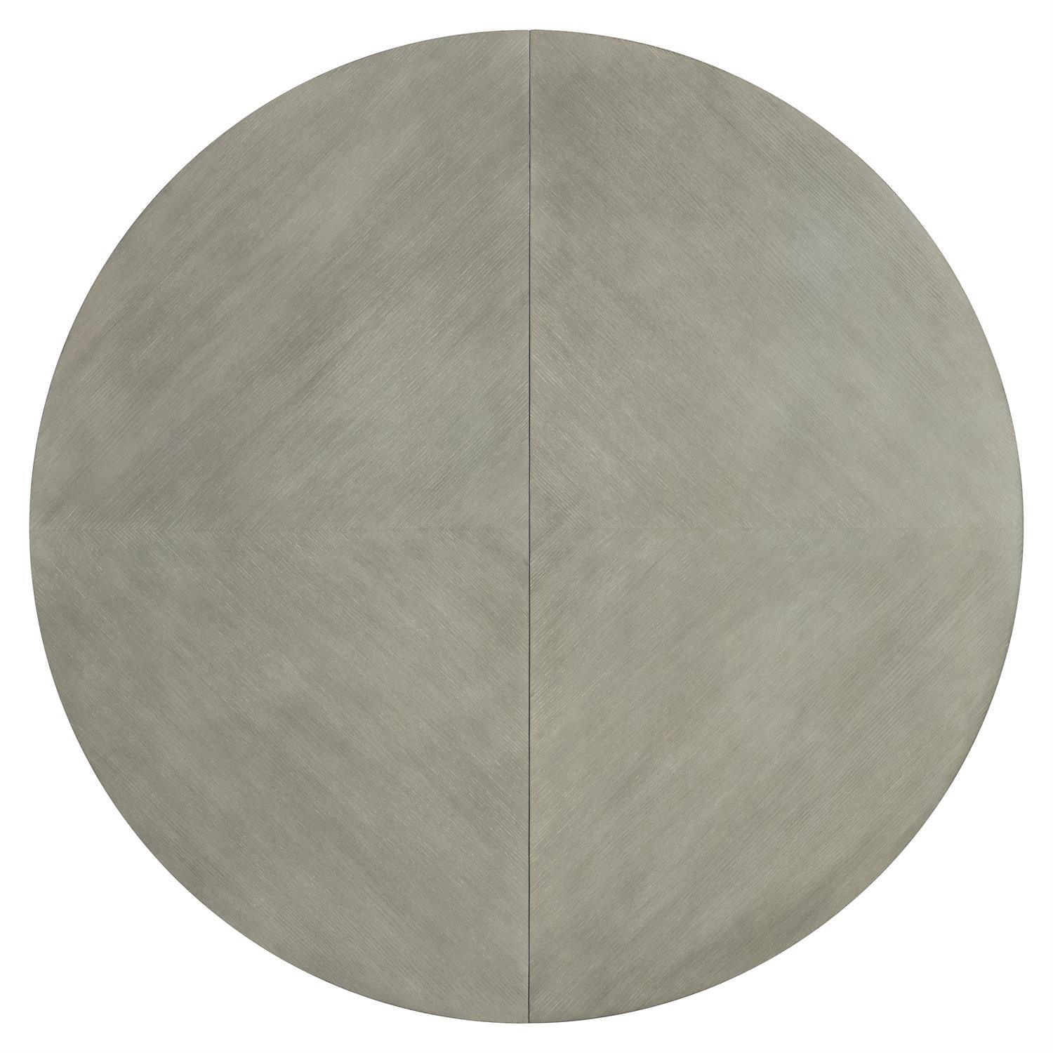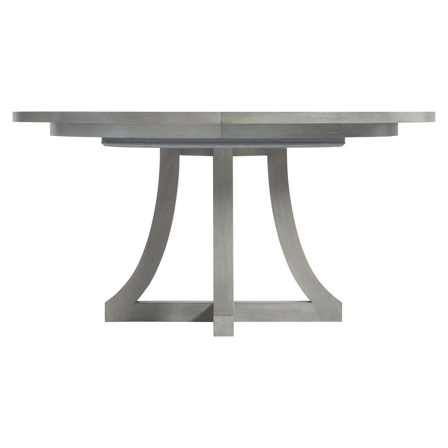 Bernhardt's construction standards are fully evident throughout this piece. The gentle shape of four concave legs and a subtle grain pattern on the top offer a restrained elegance for the cornelia dining table, the base curves up to support the round top, which can expand to an oval shape with the addition of a leaf, and the beautiful design is highlighted by a light grey nebbia finish. These specifications reflect Bernhardt's belief that exceptional furniture is defined by what cannot be seen as much as what can.
