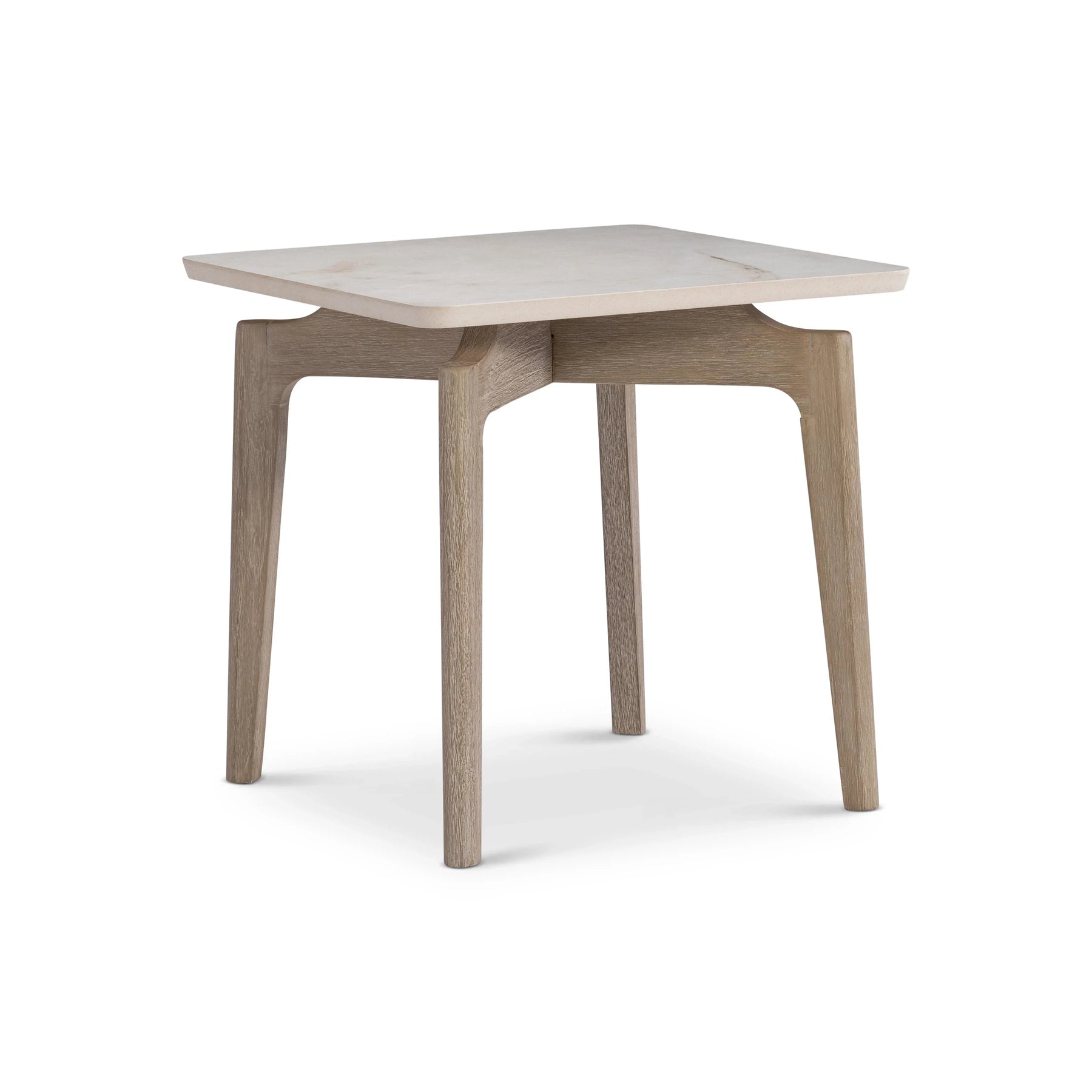 The Aurora Outdoor Side Table brings the Aurora collection's signature honed stone and teak material pairing into a compact side-table format, delivering premium-material outdoor accent utility with unmistakable design quality.