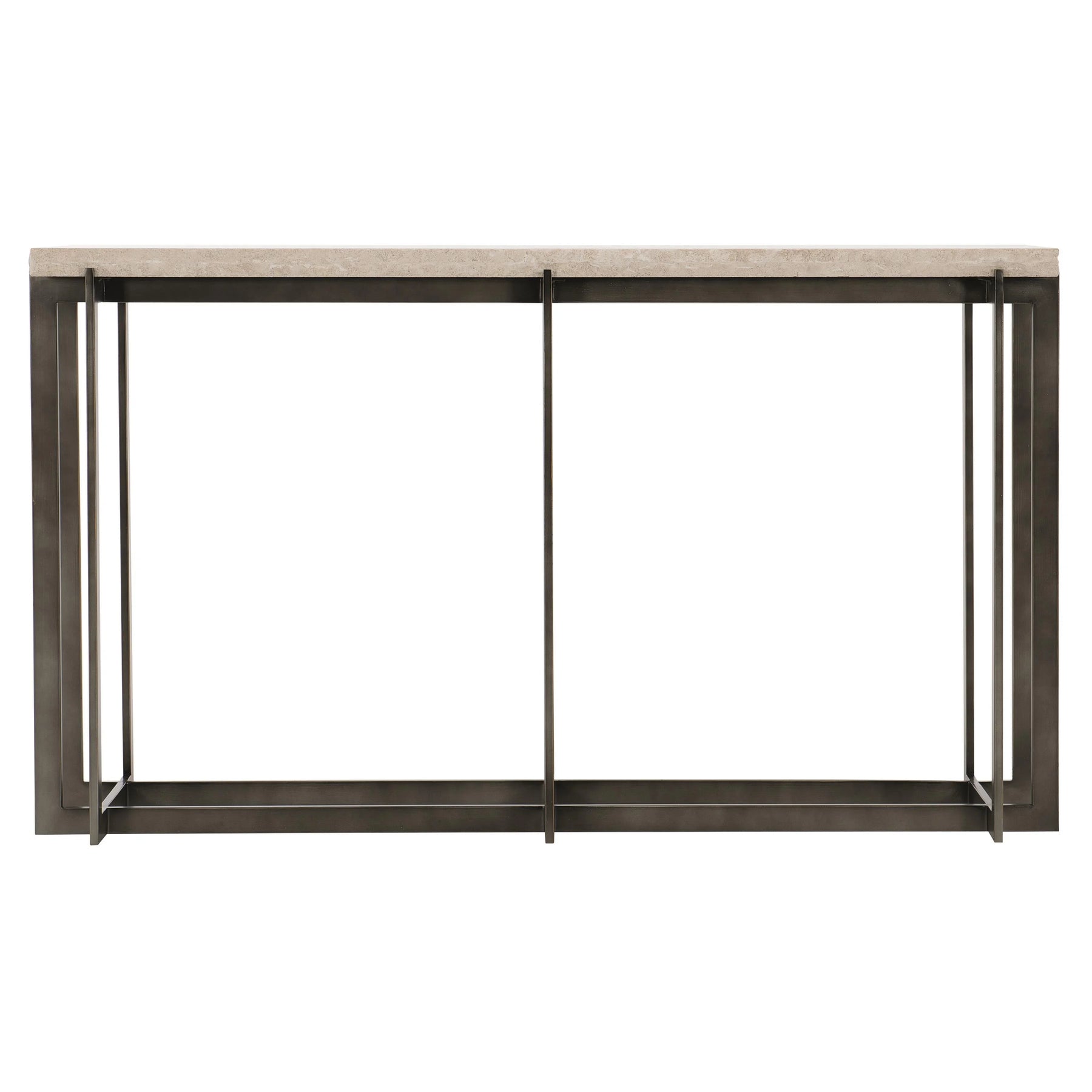 Laminated White Travertine Stone Tops. Tubular Steel Base In Oil-Rubbed Bronze Finish. Adjustable Glides.