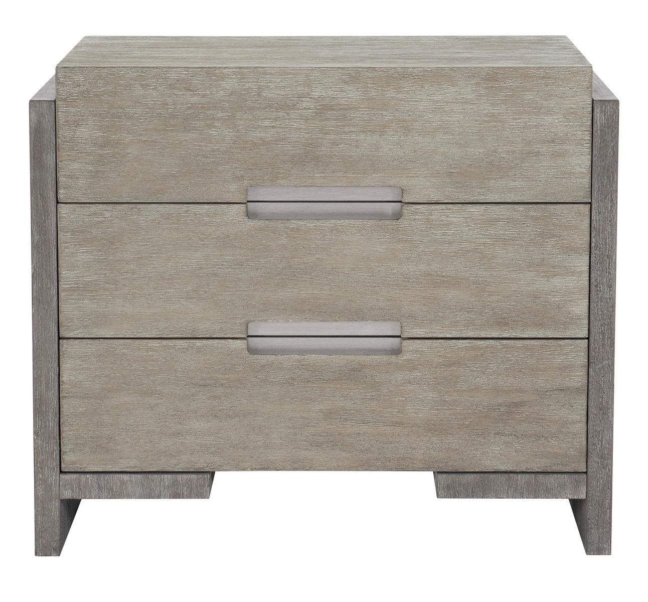 Bernhardt's construction standards are fully evident throughout this piece. Nightstand two-tone finish - drawer box in light shale finish with support panels and rails in dark shale finish. three soft-closing drawers with inset brushed stainless steel plate and finger pull. dual port, and usb charger on back of drawer box. adjustable glides. Such attention to construction detail distinguishes genuine Bernhardt craftsmanship and sets this piece apart from furniture built to lesser standards.