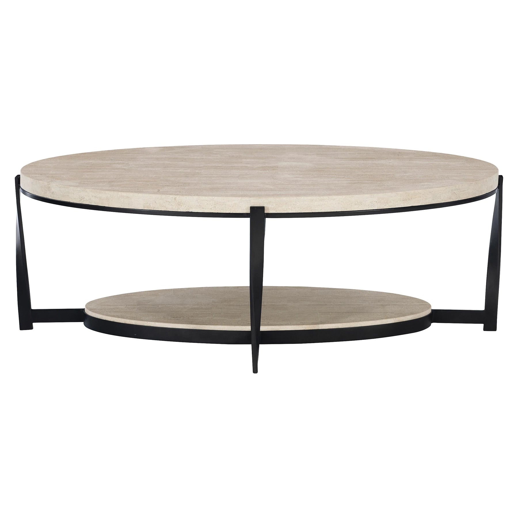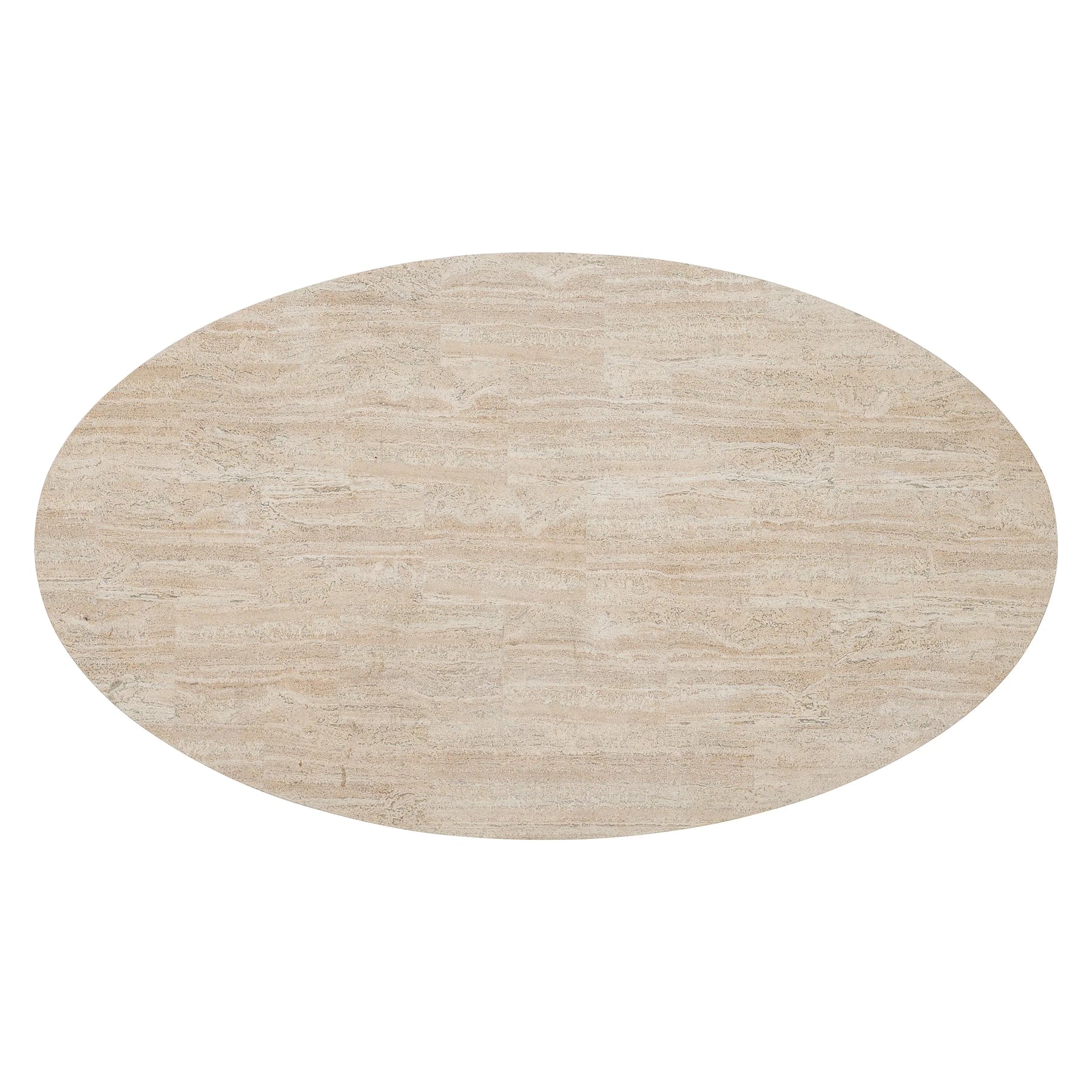 Laminated White Travertine Stone Top And Inset Stone Shelf. Textured Steel Frame In Aged Pewter Finish. Adjustable Glides.