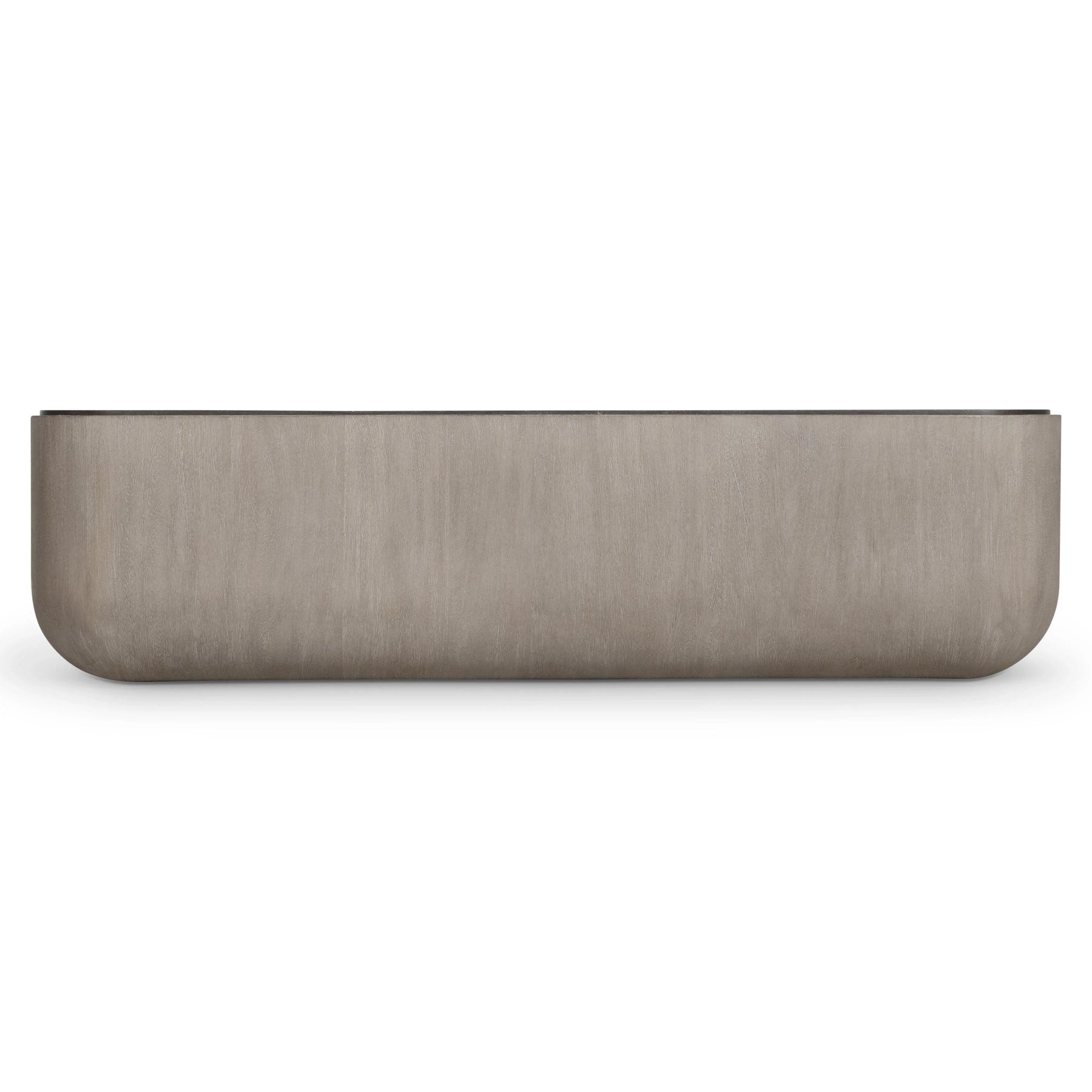 Mahogany Cocktail Table In Forry Finish. Semi-Polished Bluestone Top. Casters.