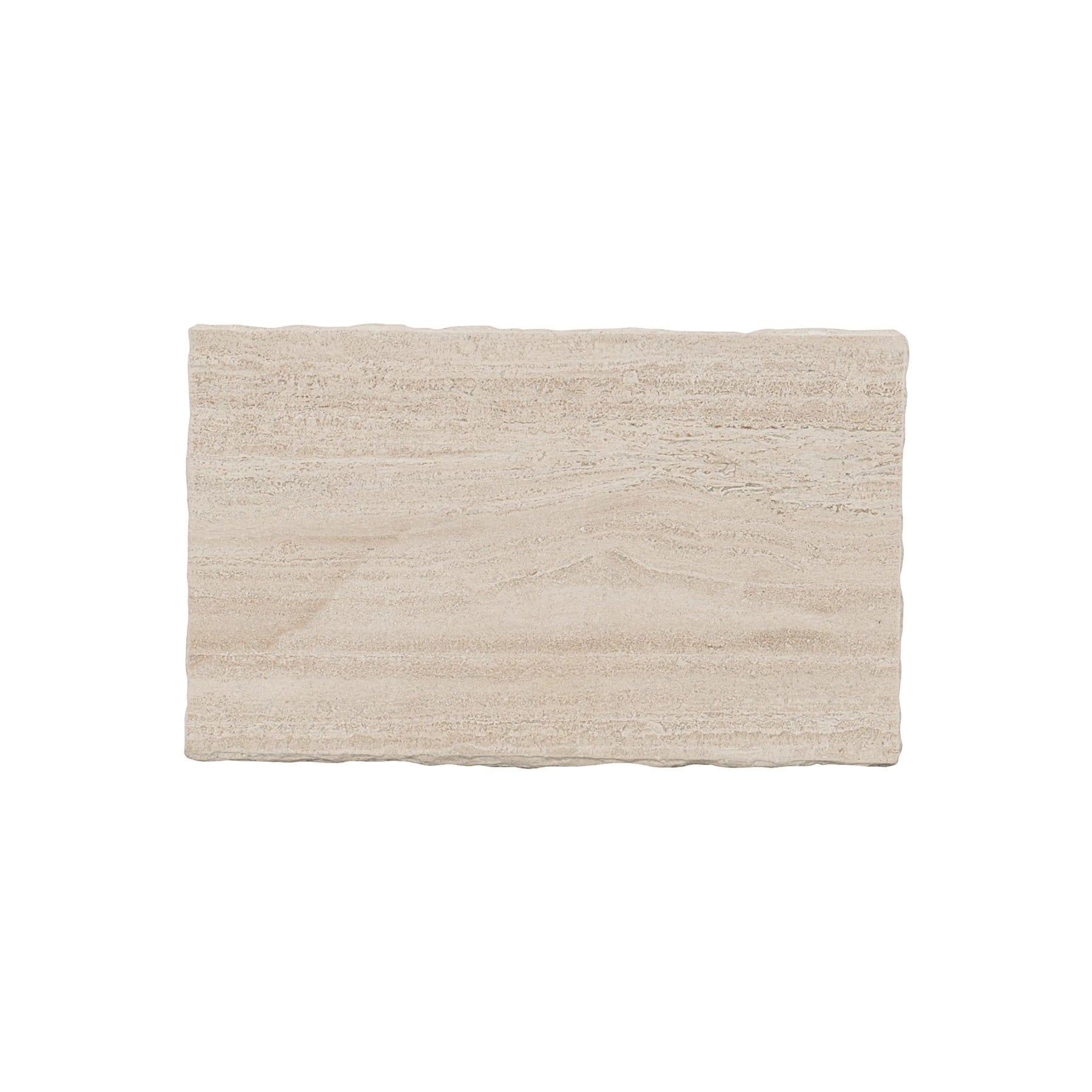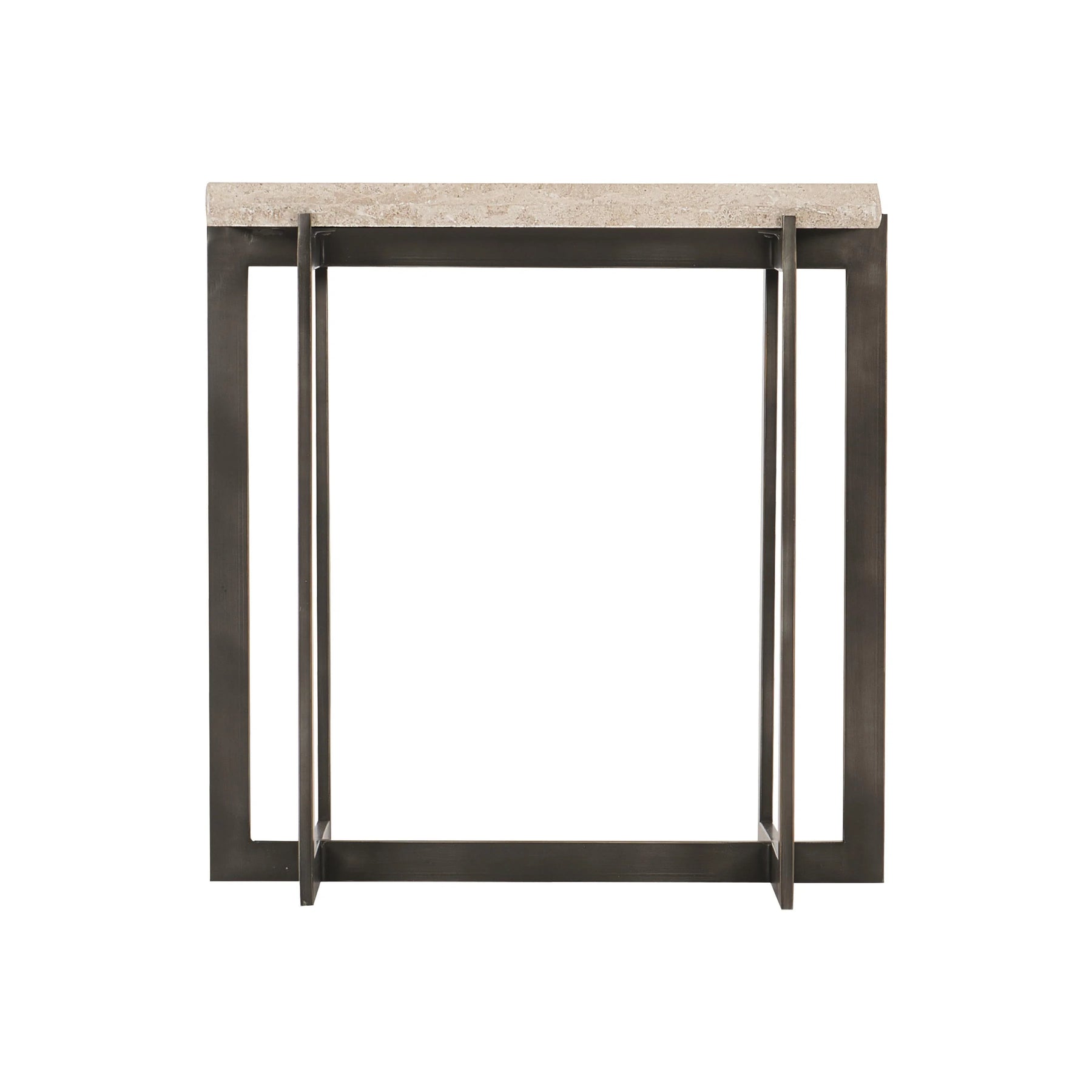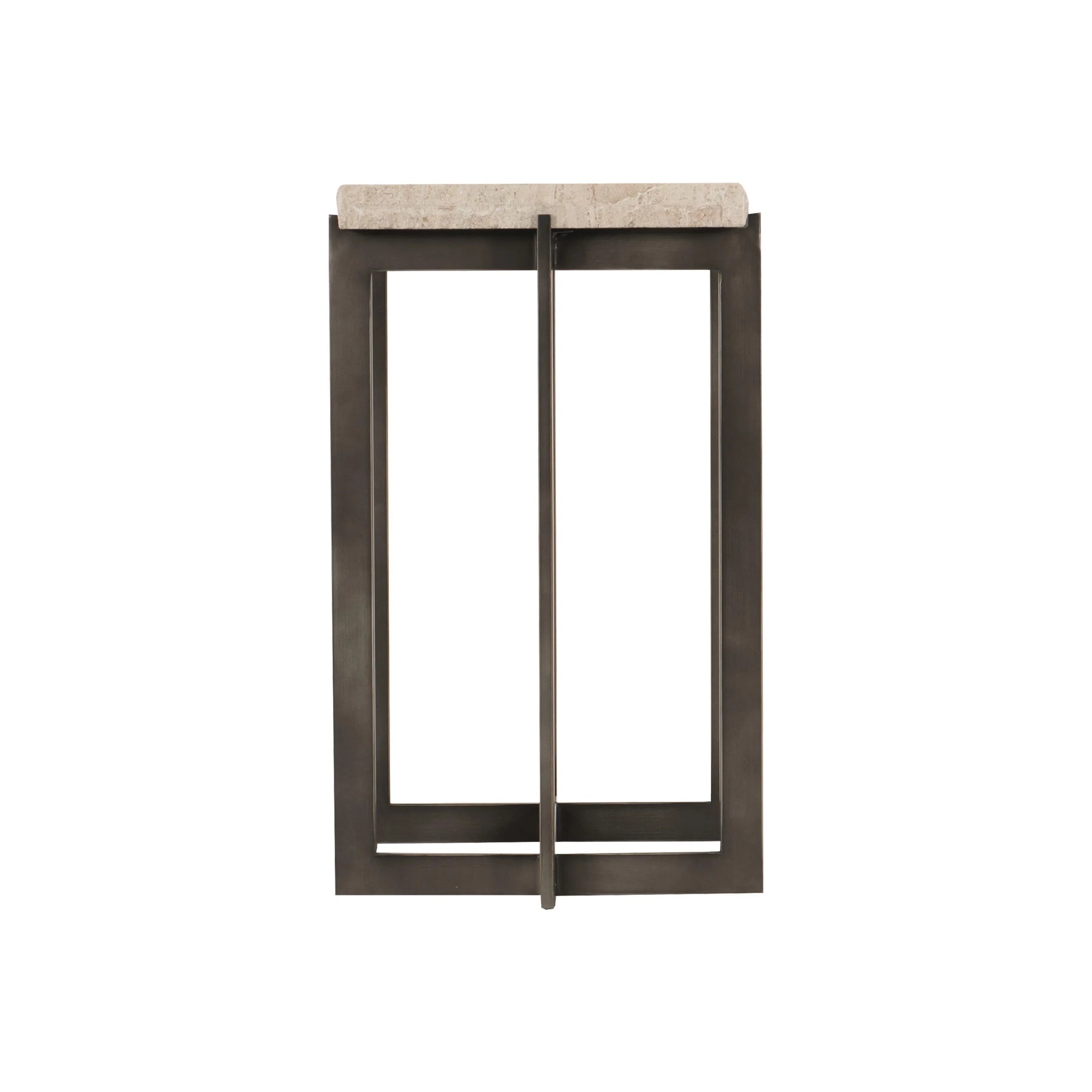 Laminated White Travertine Stone Tops. Tubular Steel Base In Oil-Rubbed Bronze Finish. Adjustable Glides.