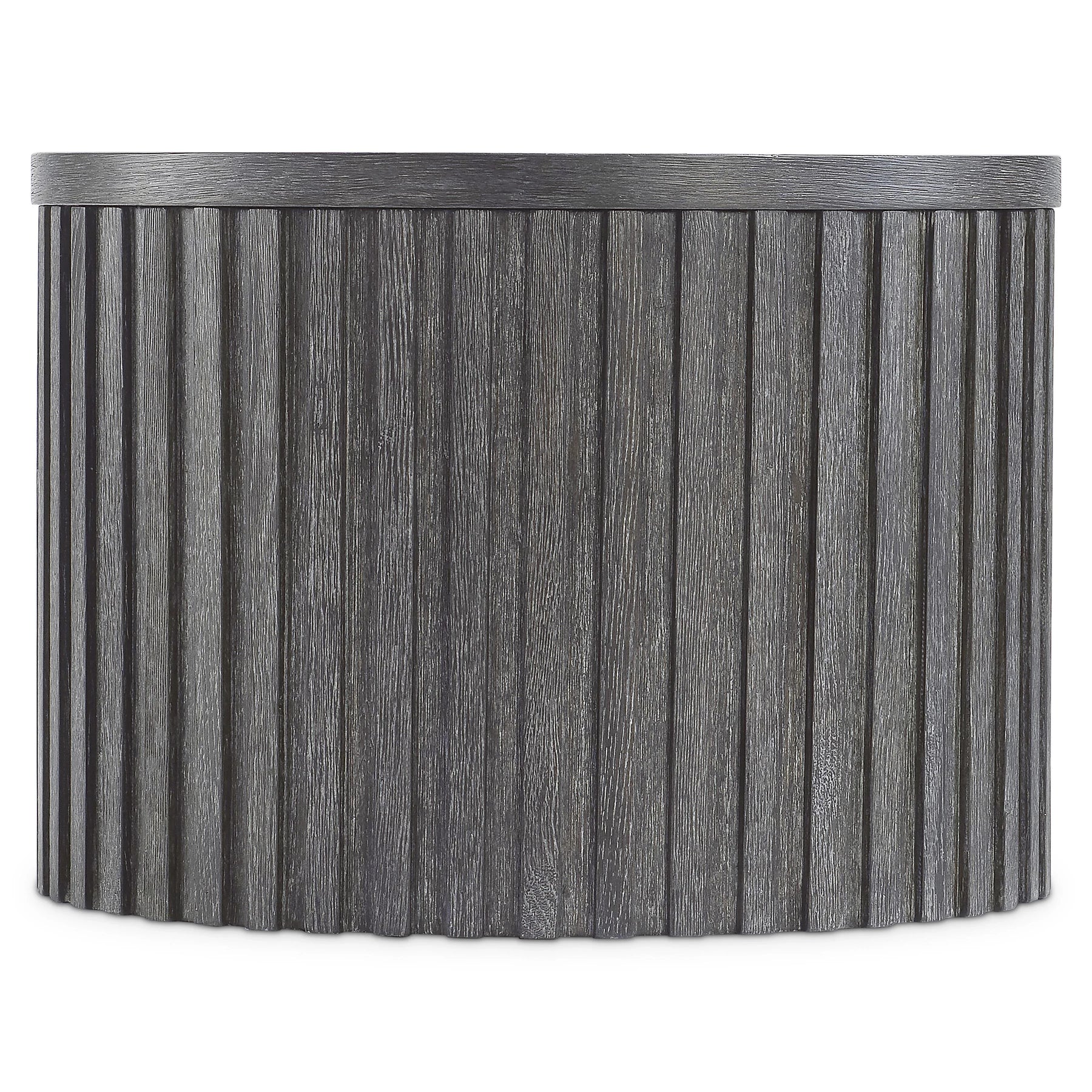 Inspired By A Classic Drum Shape, The Menton Side Table Features Deep Linear Reeding On The Sides And A Smooth Table Surface. The Design Is Casual And Modern, With An Elevated Appeal. The Deeply Textured Woodgrain Is Highlighted By Our Sutton Finish.