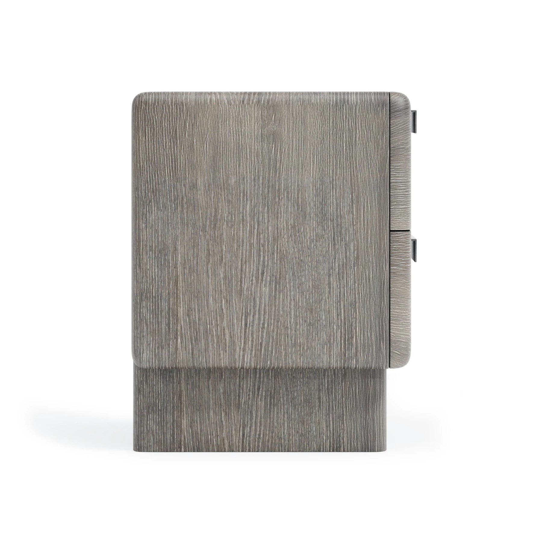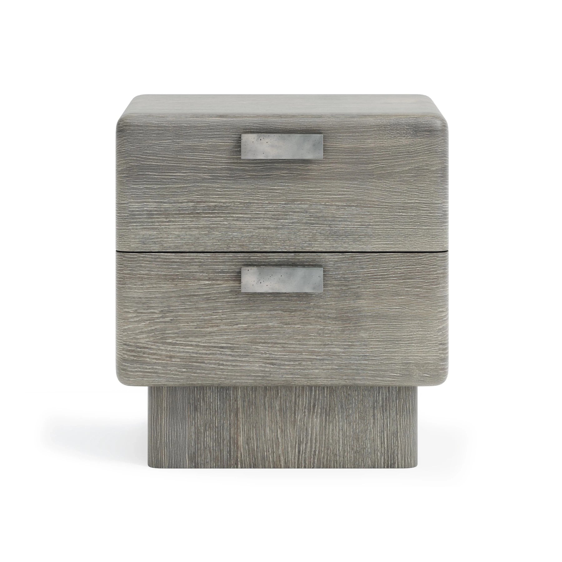 The Monolith Nightstand Showcases Perfect Proportions That Create A Balance Of Modern And Rustic Styles. A Plinth Base Supports A Bold Case That Is Defined By Rounded Corners And Is Finished In Puma. Two Soft-Close Drawers Are Highlighted By Geometric Cast Aluminum Hardware In Graphite Finish.