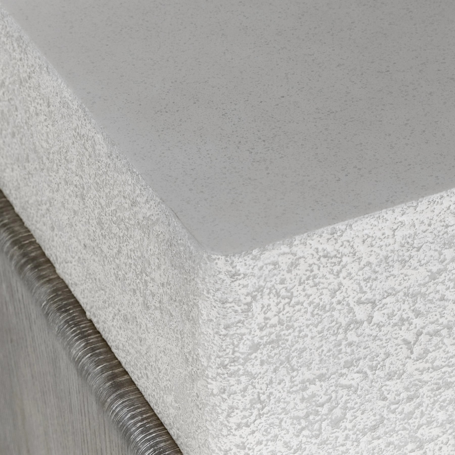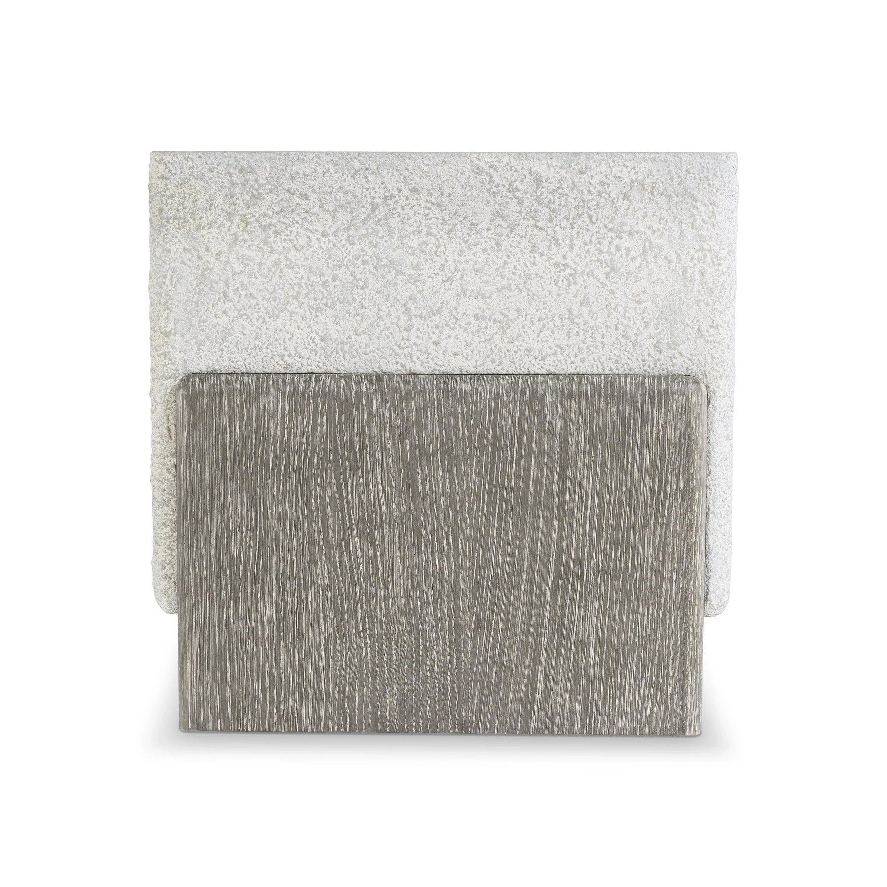 The Monolith Side Table Showcases A Bold Design With A Textured Faux Stone Block Nested In A Wooden Base. The Top Offers A Smooth Surface While The Woodgrain Is Highlighted In A Puma Finish On The Base As It Curves Up To Cradle Two Sides. It'S A Modern Style With An Organic Inspiration.