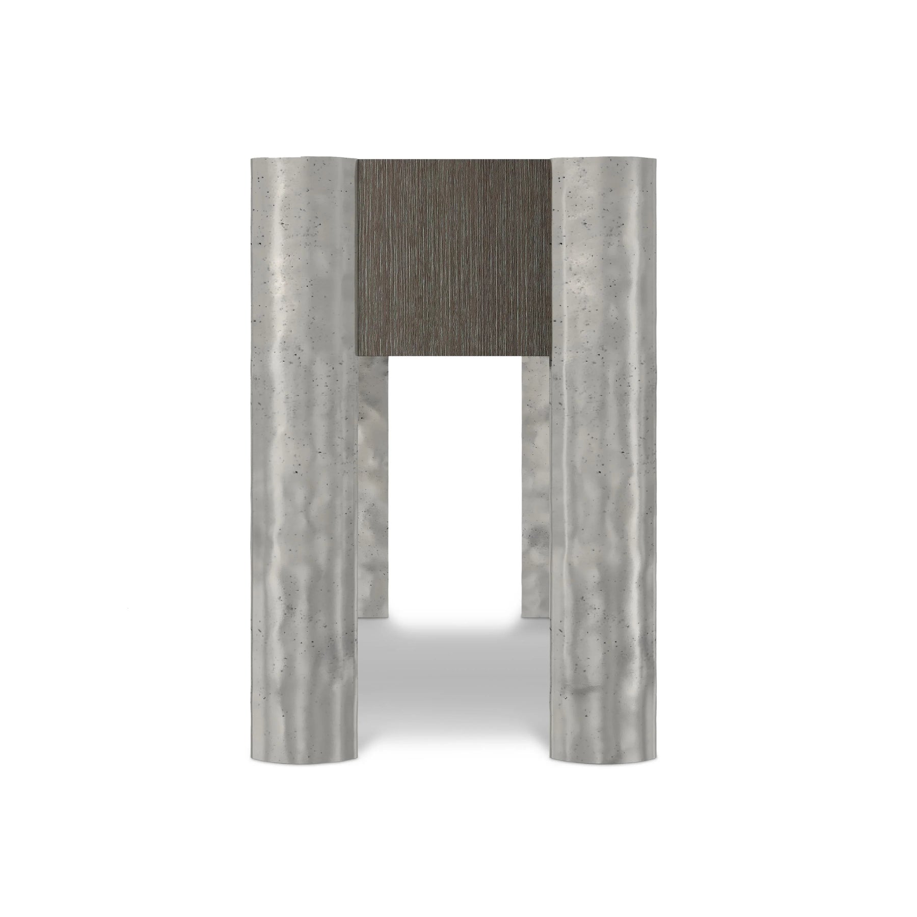 Porcini Finish On Nightstand. Wood Drawer Box. One Soft-Close Drawer. Fully Finished Back. Two-Port Usb Charging System On Back Of Case. Shaped Cast Aluminum Legs In Bright Graphite Finish With Texture On Front And Back Of Legs. Adjustable Glides.
