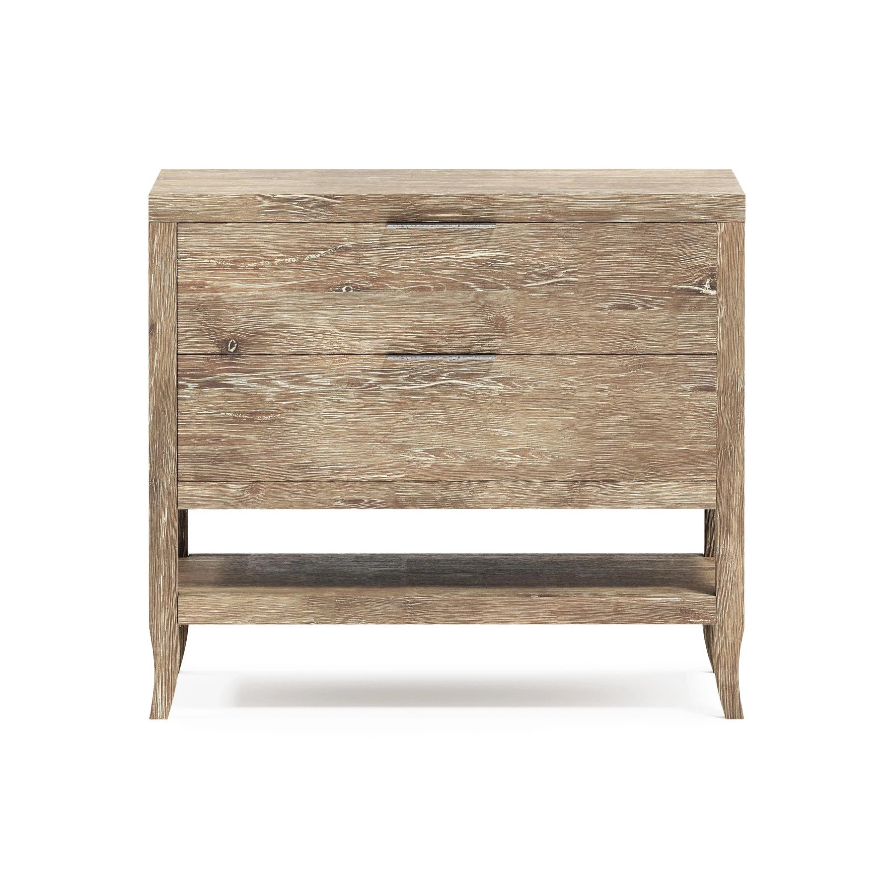Wirebrushed Oak Nightstand In Aurum Finish With Two Pull-To-Open, Soft-Close Drawers With Applied Texture Tab Pulls In Barlow Finish. Open Bottom Compartment. Two-Port A+C Usb Charging Unit. Adjustable Glides.