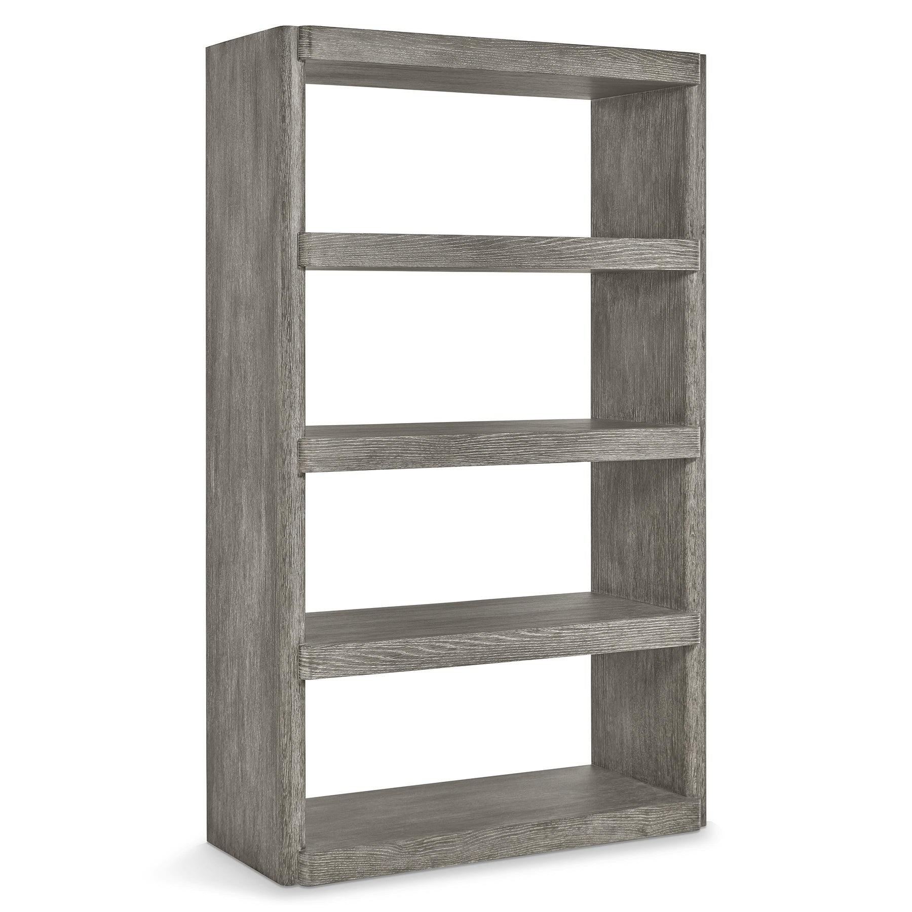 Simple Lines Take On An Elevated Style For The Monolith Etagere. The Shelves Have Rounded Corners And Extend Slightly Beyond The Fixed Side Supports, Giving The Design A Unique Style. Wirebrushed Oak Adds Visual Interest That'S Heightened By The Puma Finish.